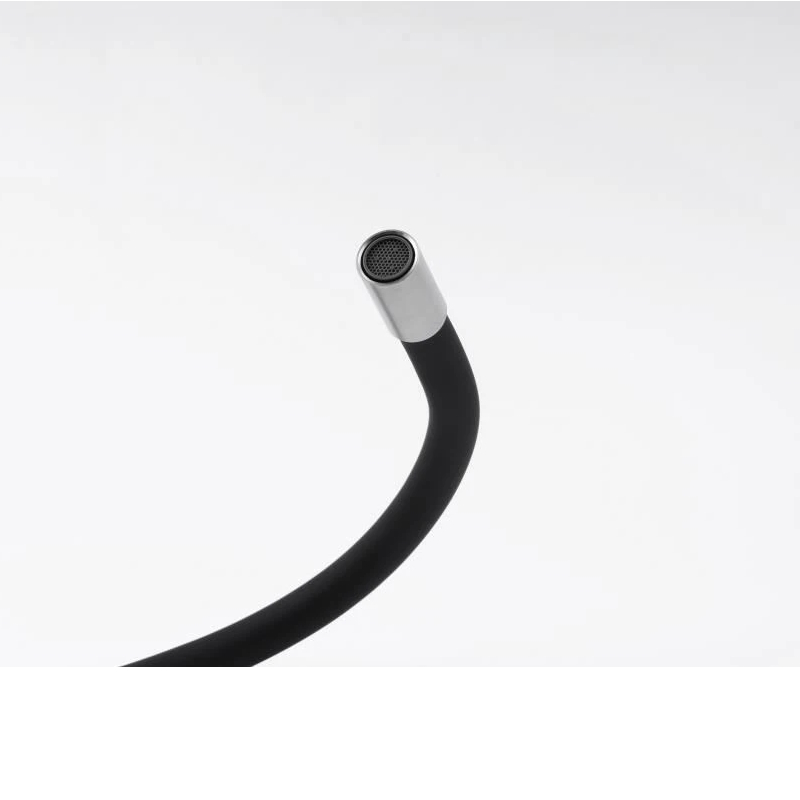 Внешняя поверхность излива выполнена из приятного на ощупь силикона чёрного цвета, что добавляет удобства в использовании.