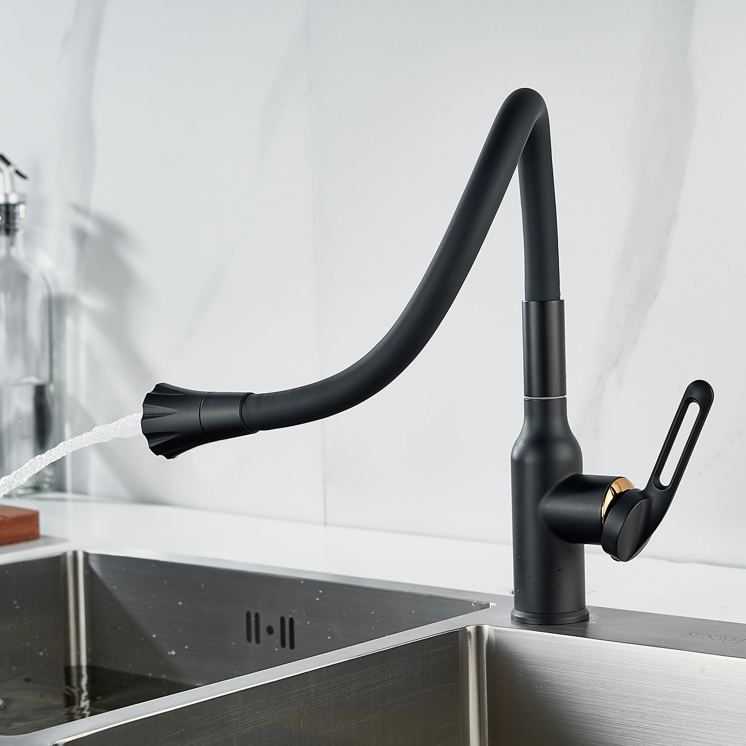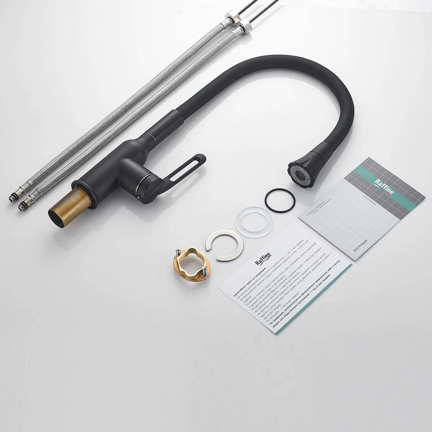Смеситель для кухни с гибким изливом Raffine F303H-3, черный