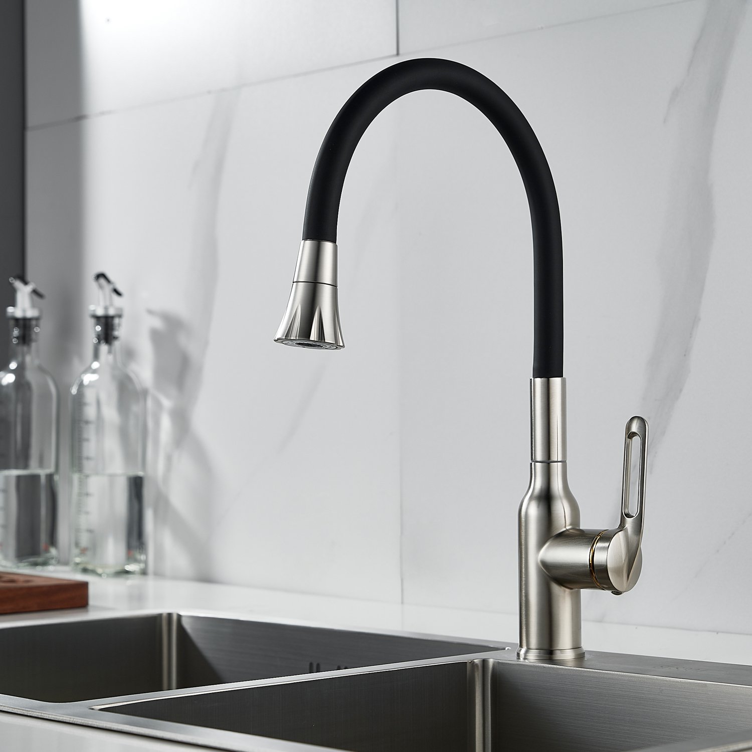 Смеситель для кухни с гибким изливом Raffine F303L-3, сатин