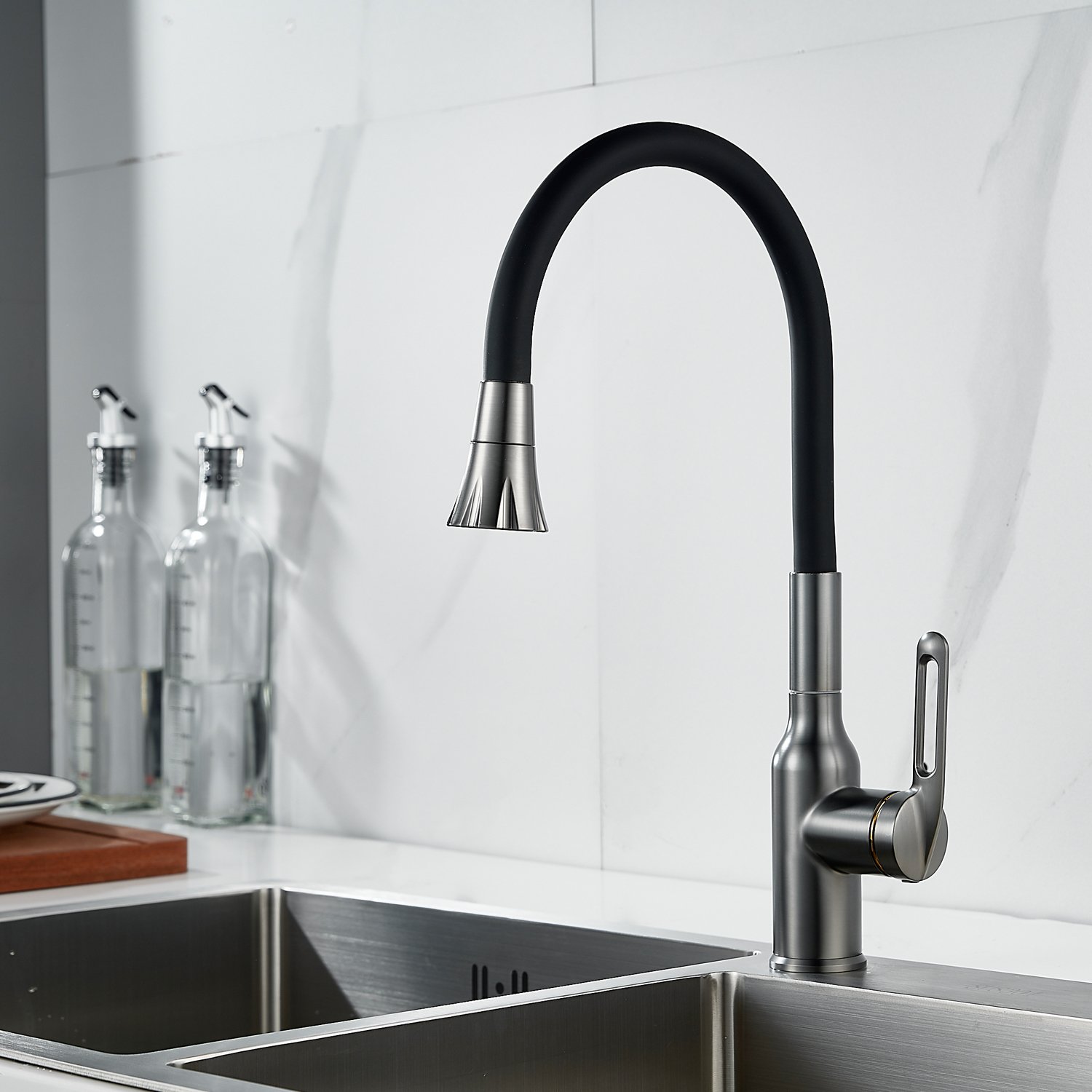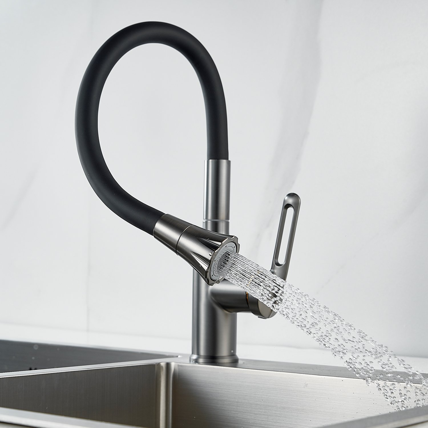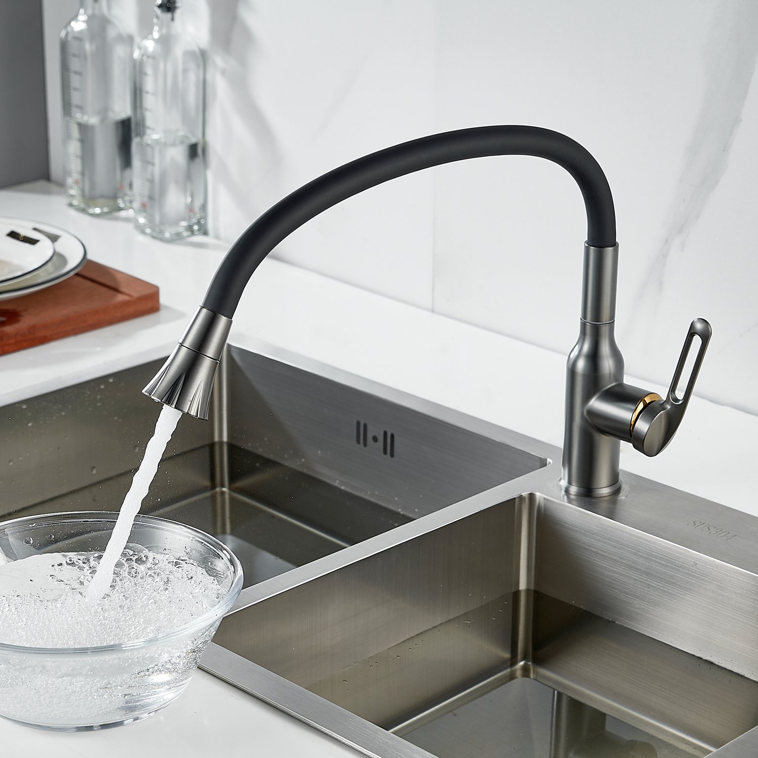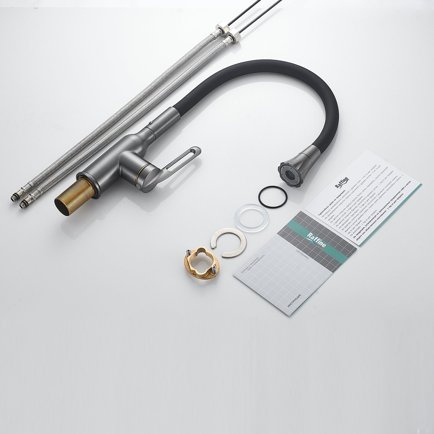 Смеситель для кухни с гибким изливом Raffine F303T-3, оружейная сталь