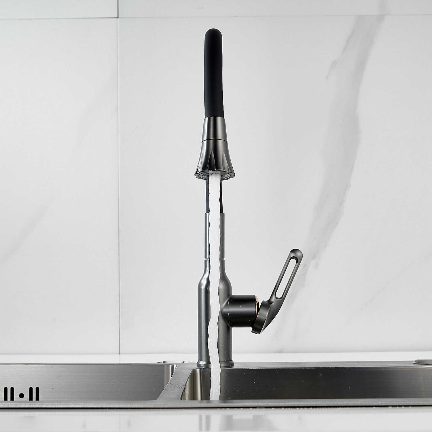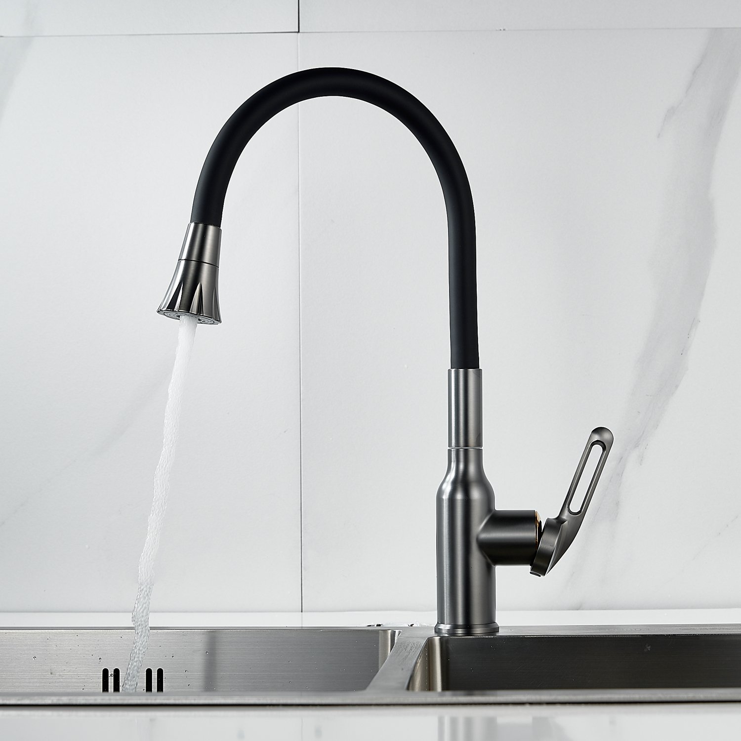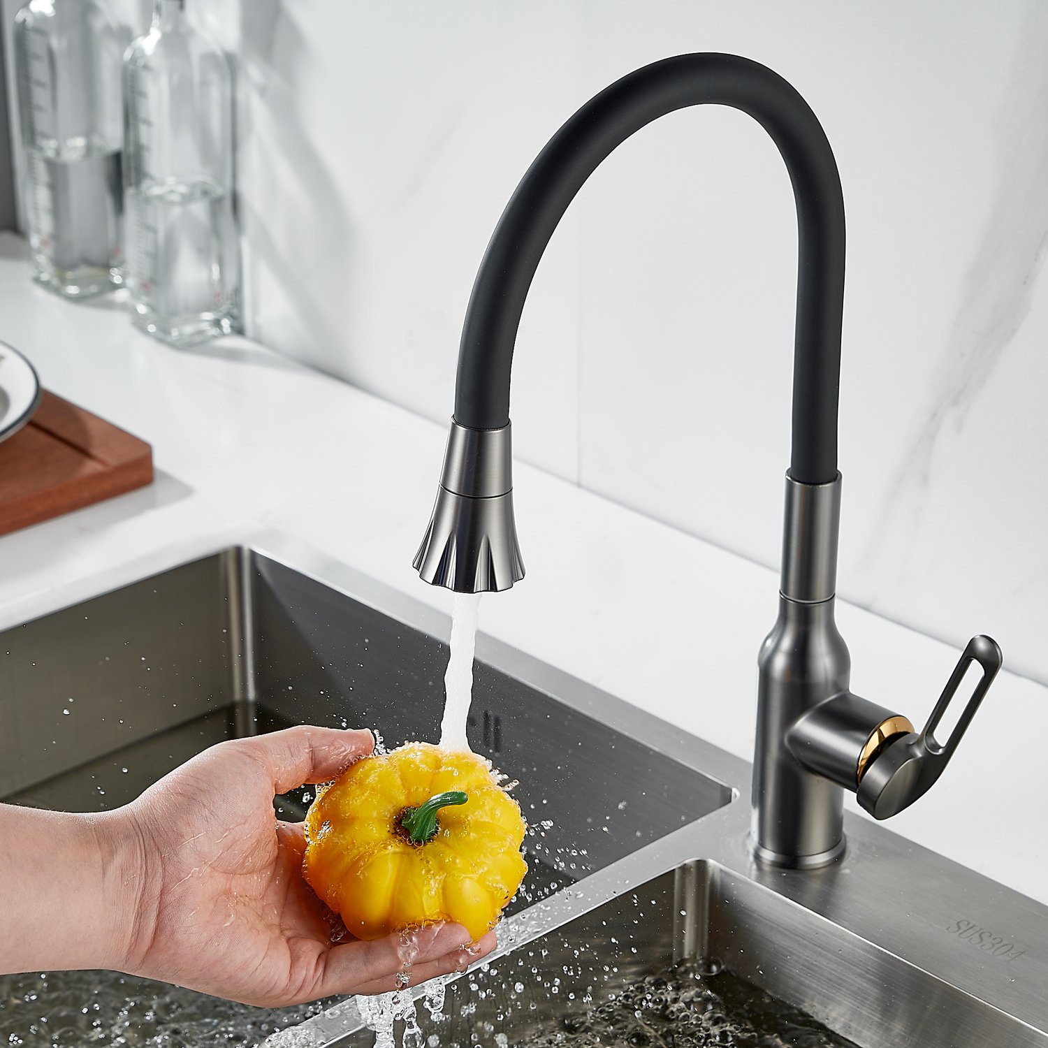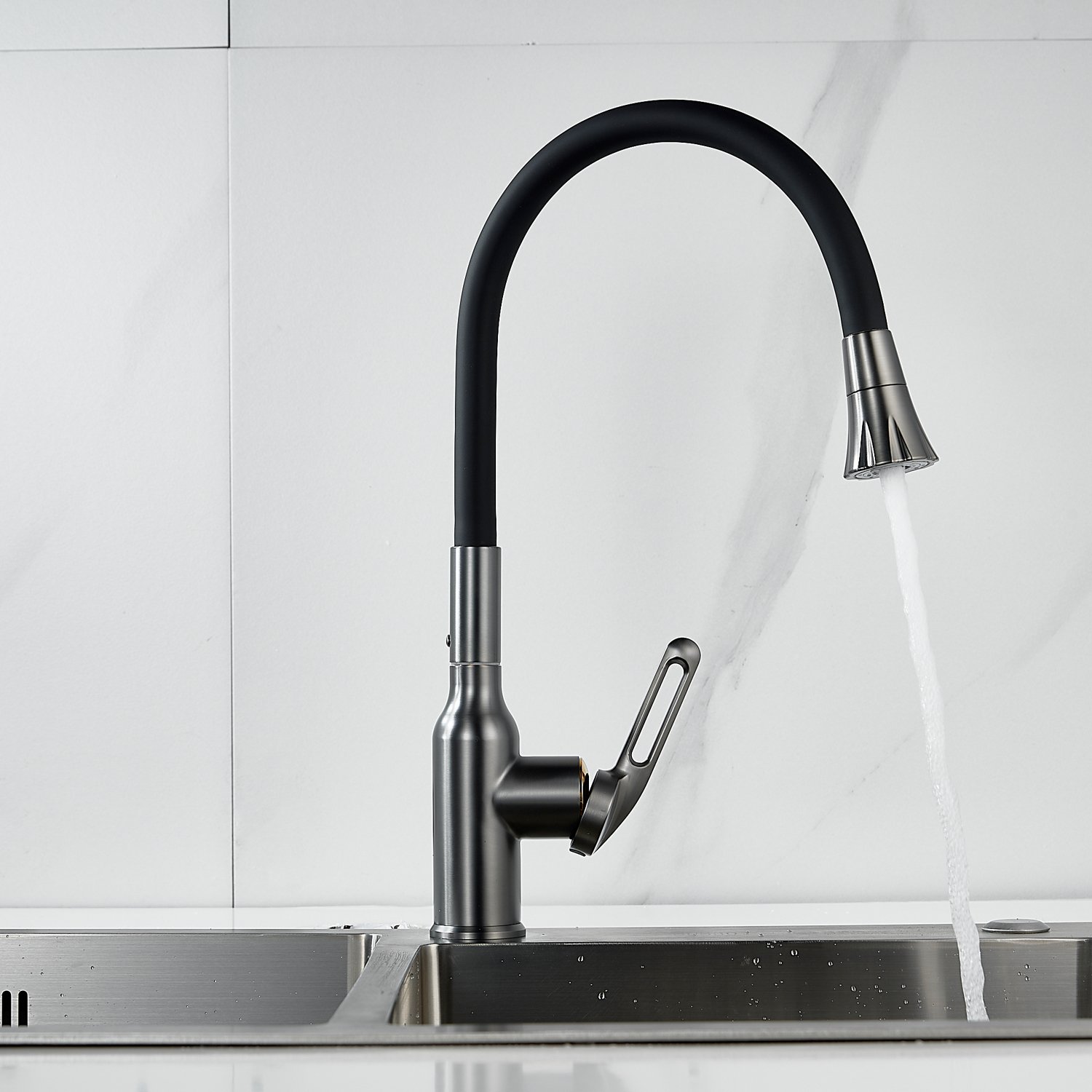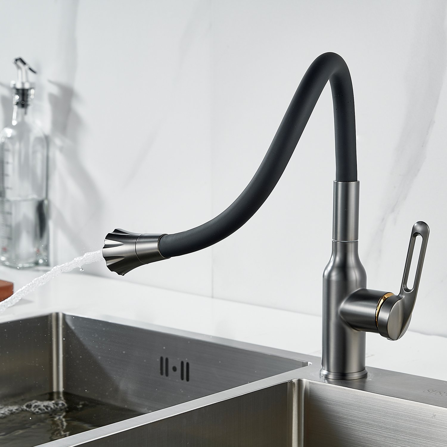 Смеситель для кухни с гибким изливом Raffine F303T-3, оружейная сталь