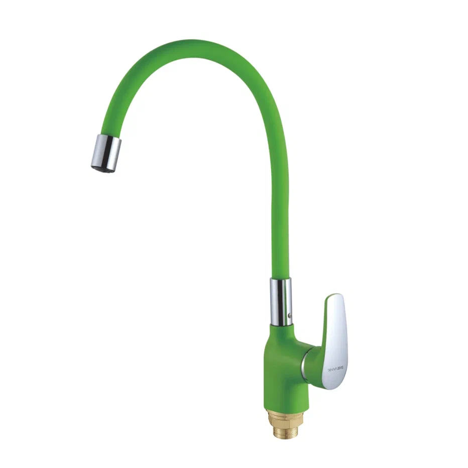 Смеситель для кухни с гибким изливом Shevanik S443-5, зеленый. Управление: рычажное. Вращение излива: да. Выдвижной излив: нет. Гибкий излив: да. Высота:36,5.