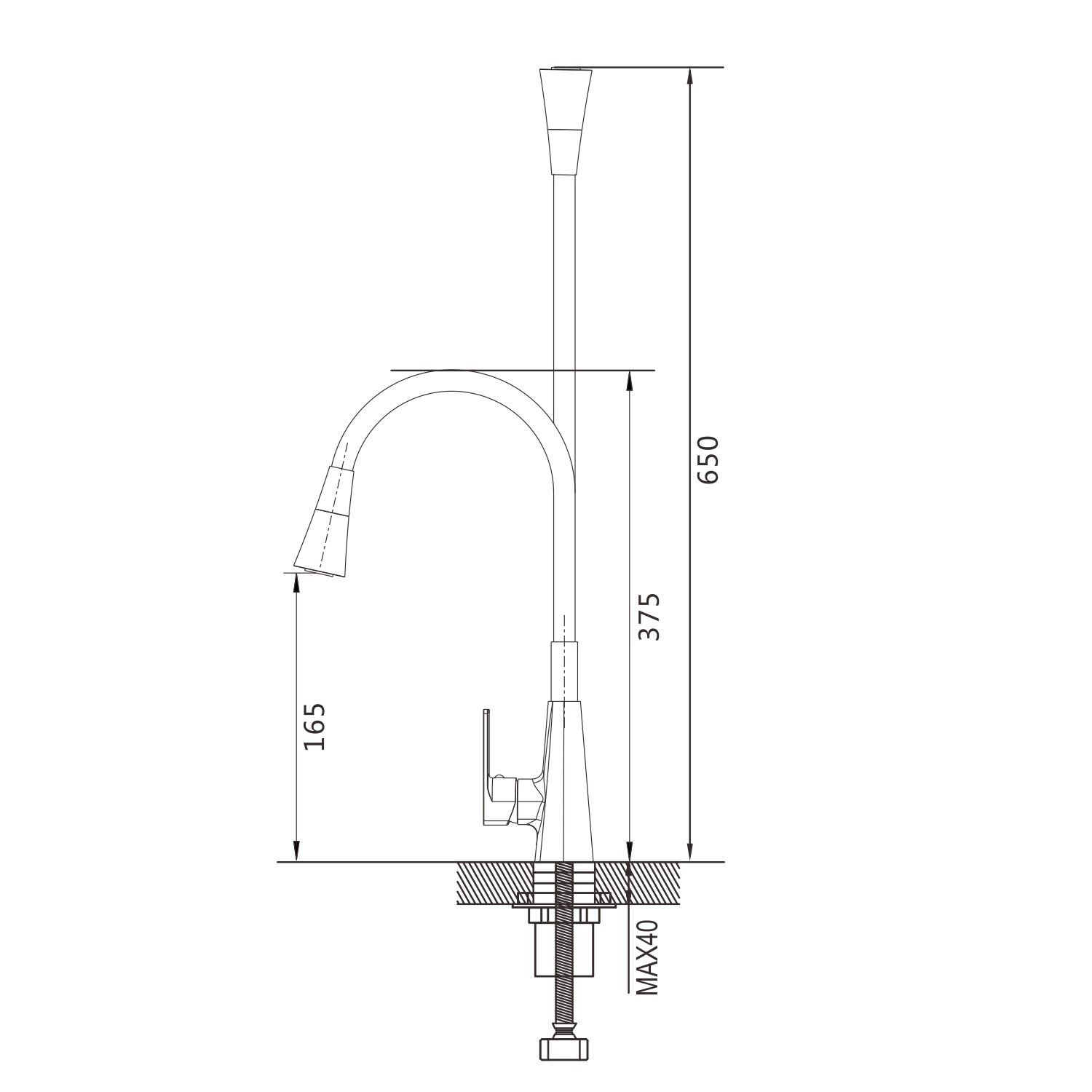 Смеситель для кухни с гибким изливом Shevanik S543H-3, черный. Управление: рычажное. Вращение излива: да. Выдвижной излив: нет. Гибкий излив: да. Высота:37,5.