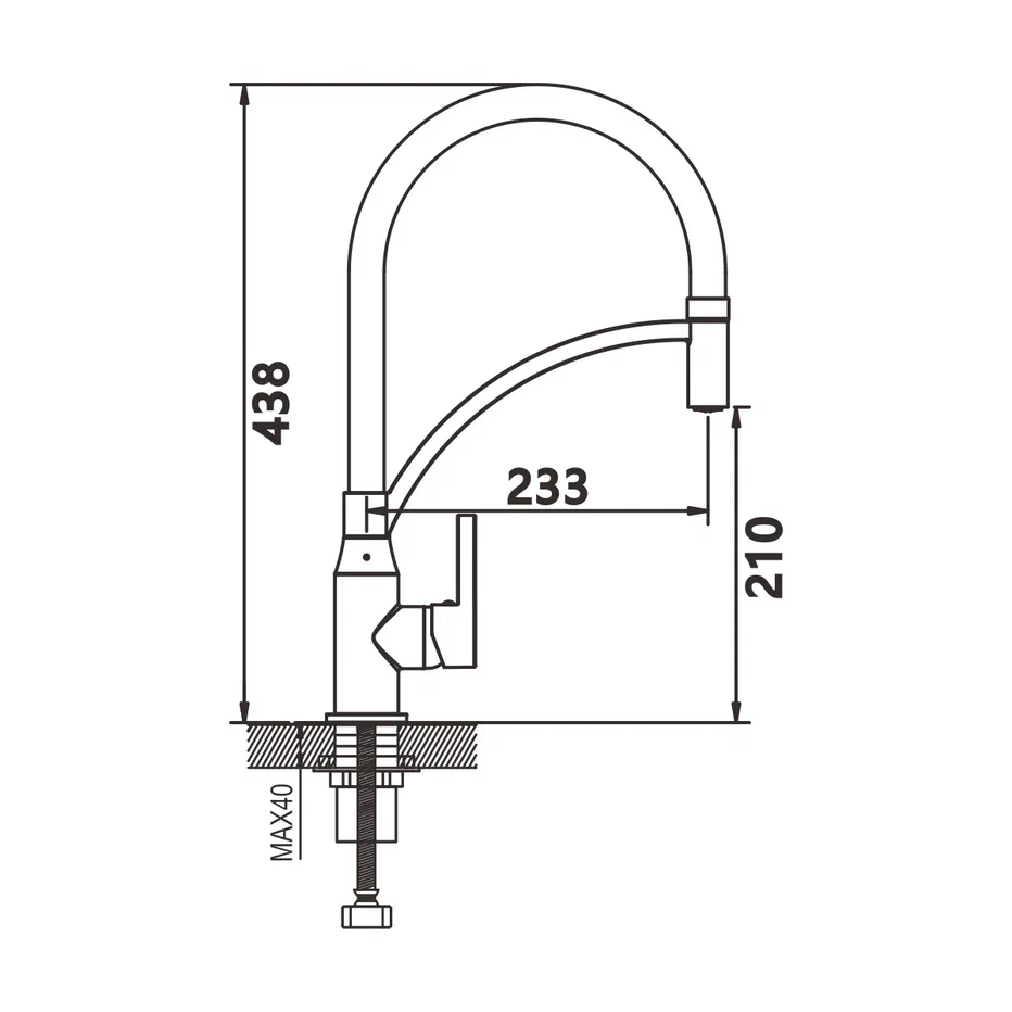 Смеситель для кухни с гибким изливом Shevanik S643H-3, черный. Управление: рычажное. Вращение излива: да. Выдвижной излив: нет. Гибкий излив: да. Высота:43,8.