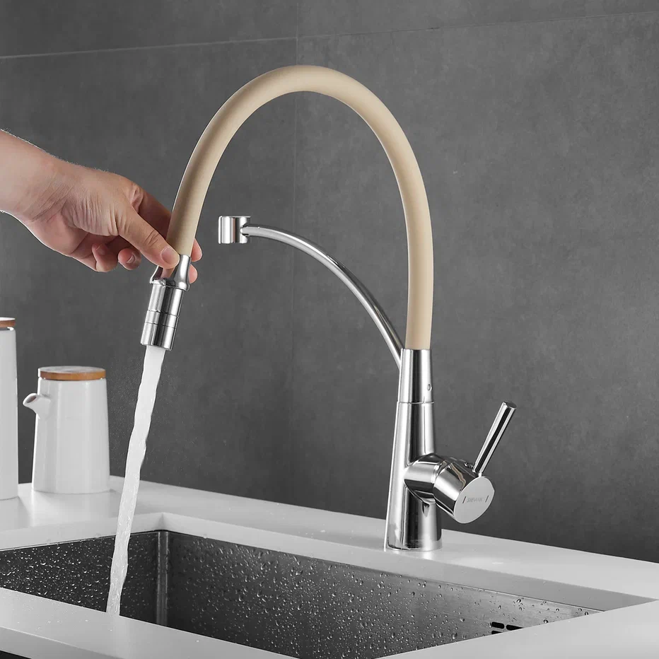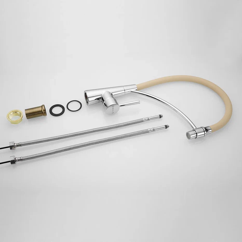 Смеситель для кухни с гибким изливом Shevanik S743-2, хром