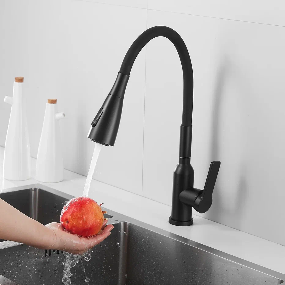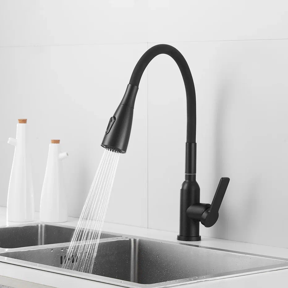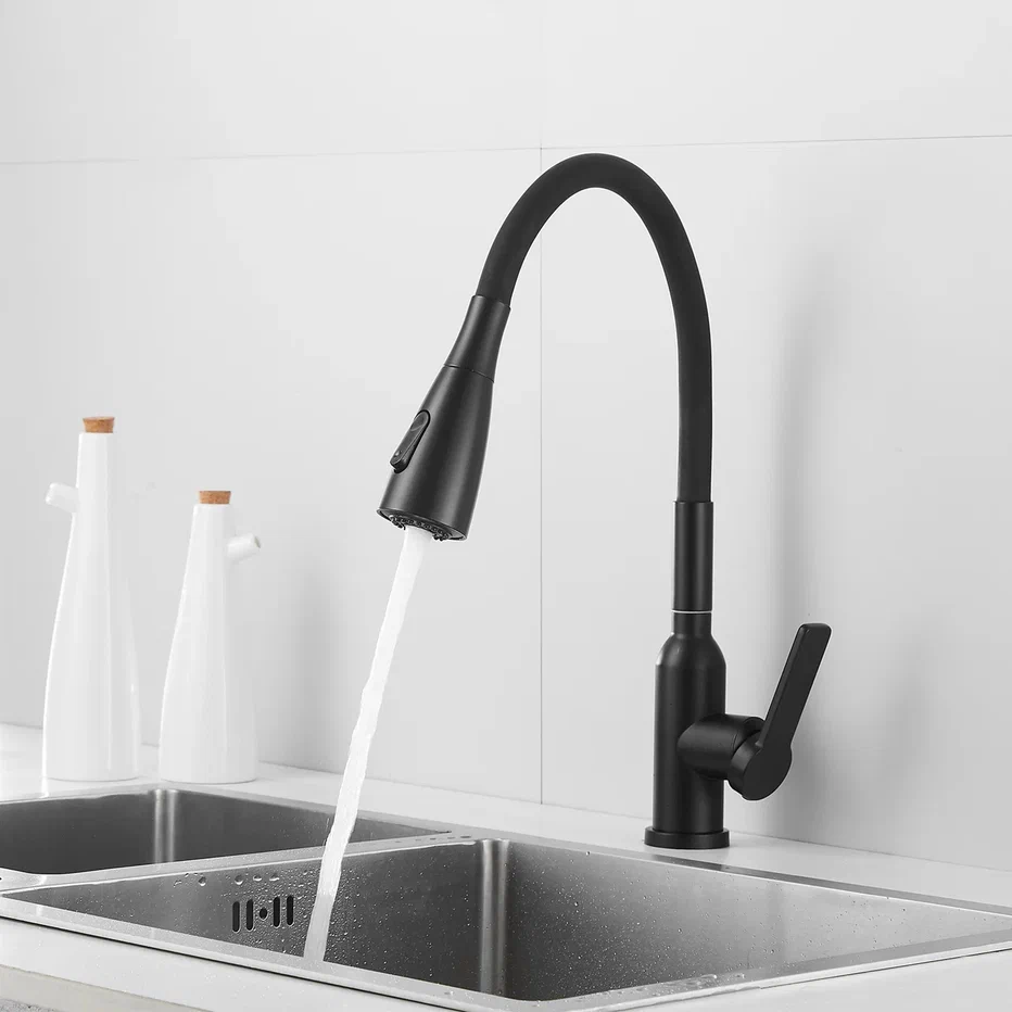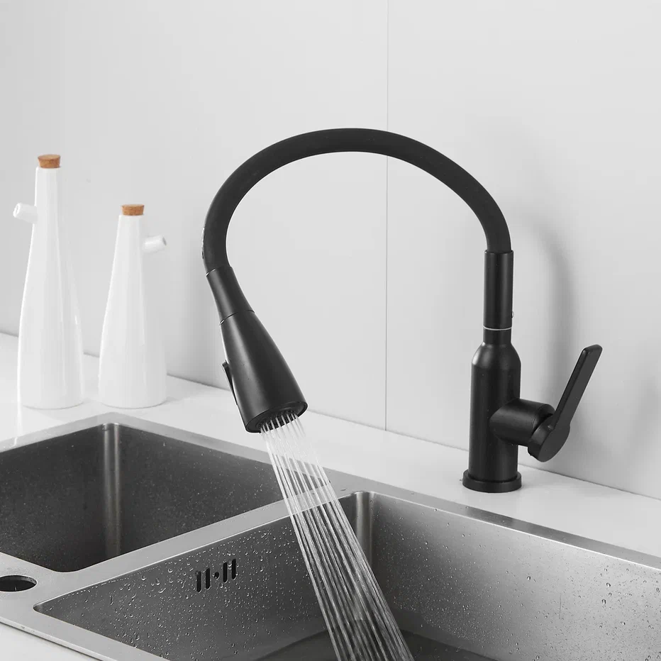 Смеситель для кухни с гибким изливом Shevanik S843H-3, черный