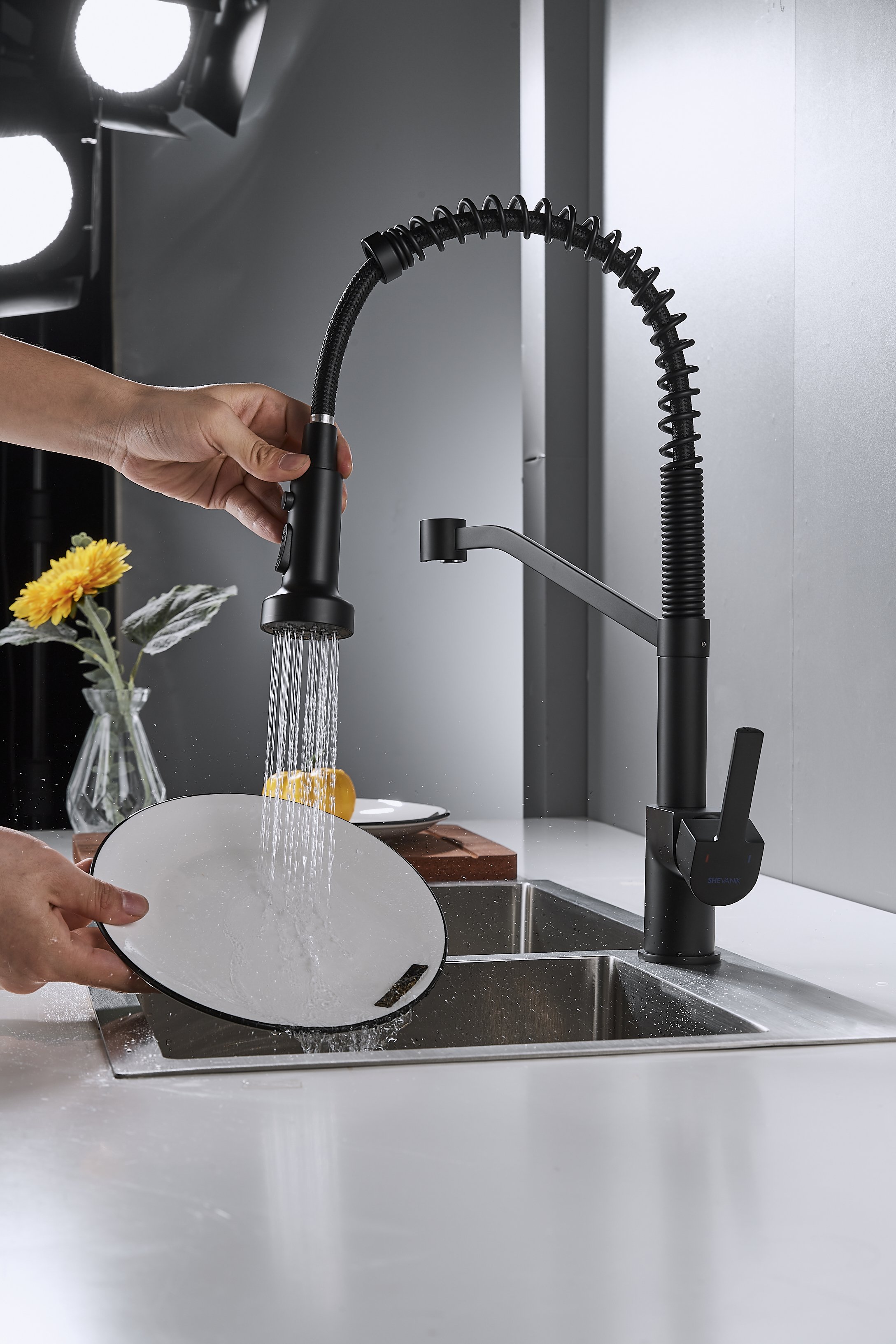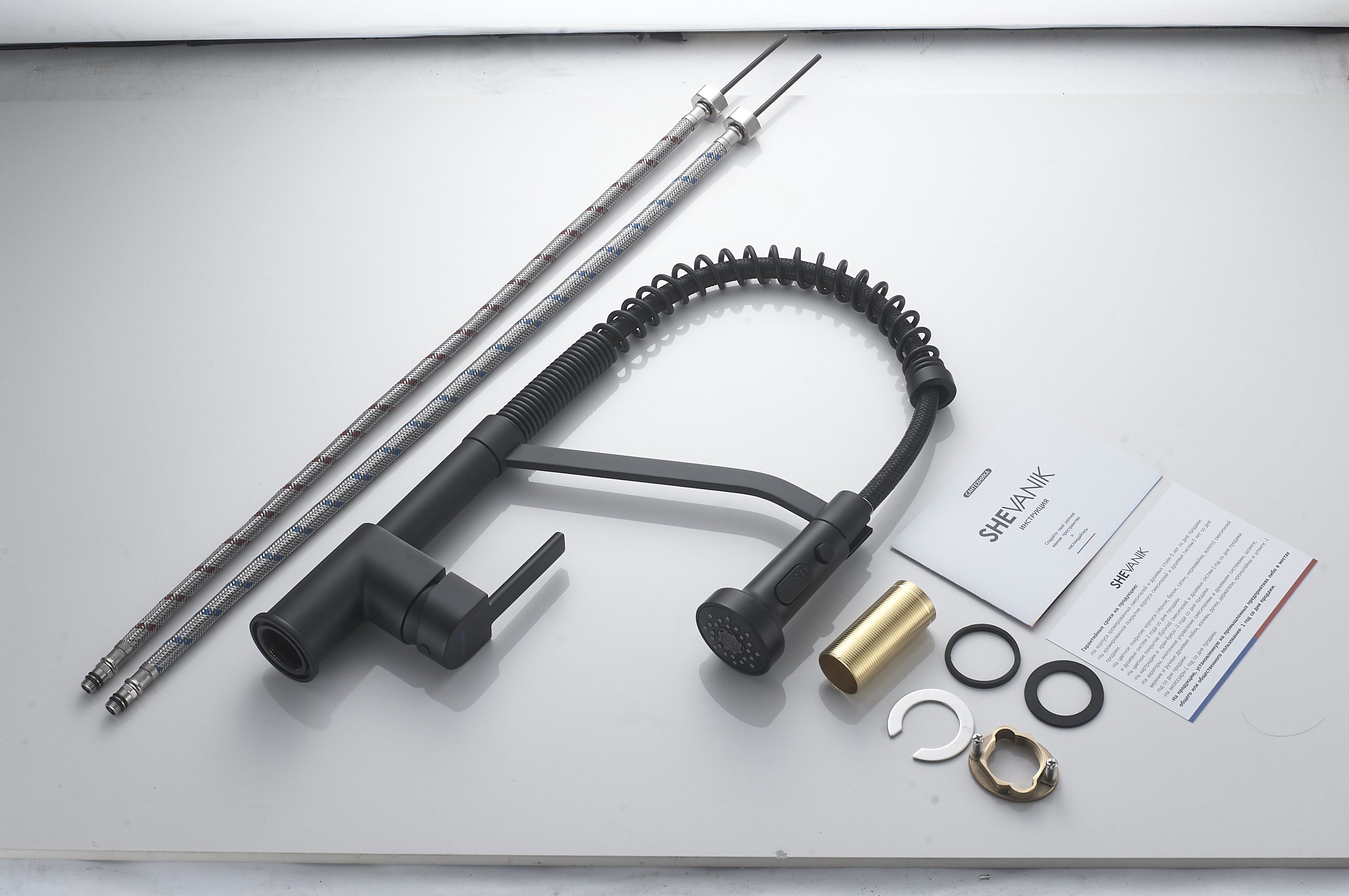 Смеситель для кухни с гибким изливом Shevanik S963H, черный