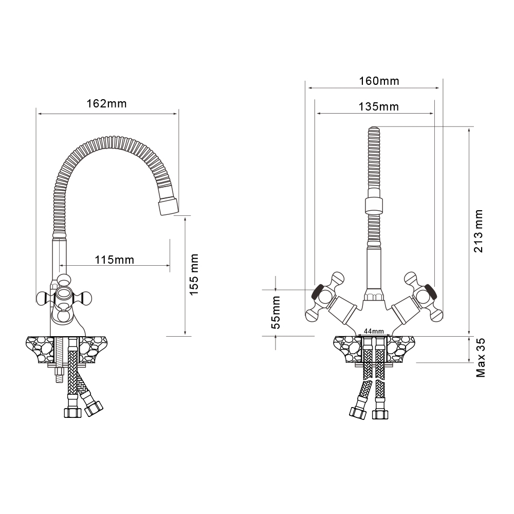 Надёжный и прочный крепёж гарантирует устойчивость и долговечность этого смесителя для кухни.
