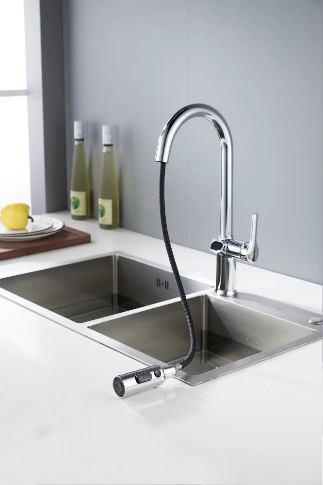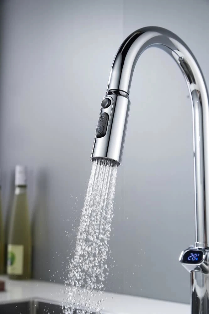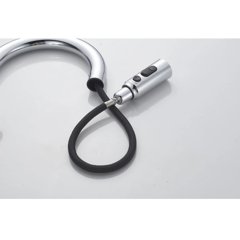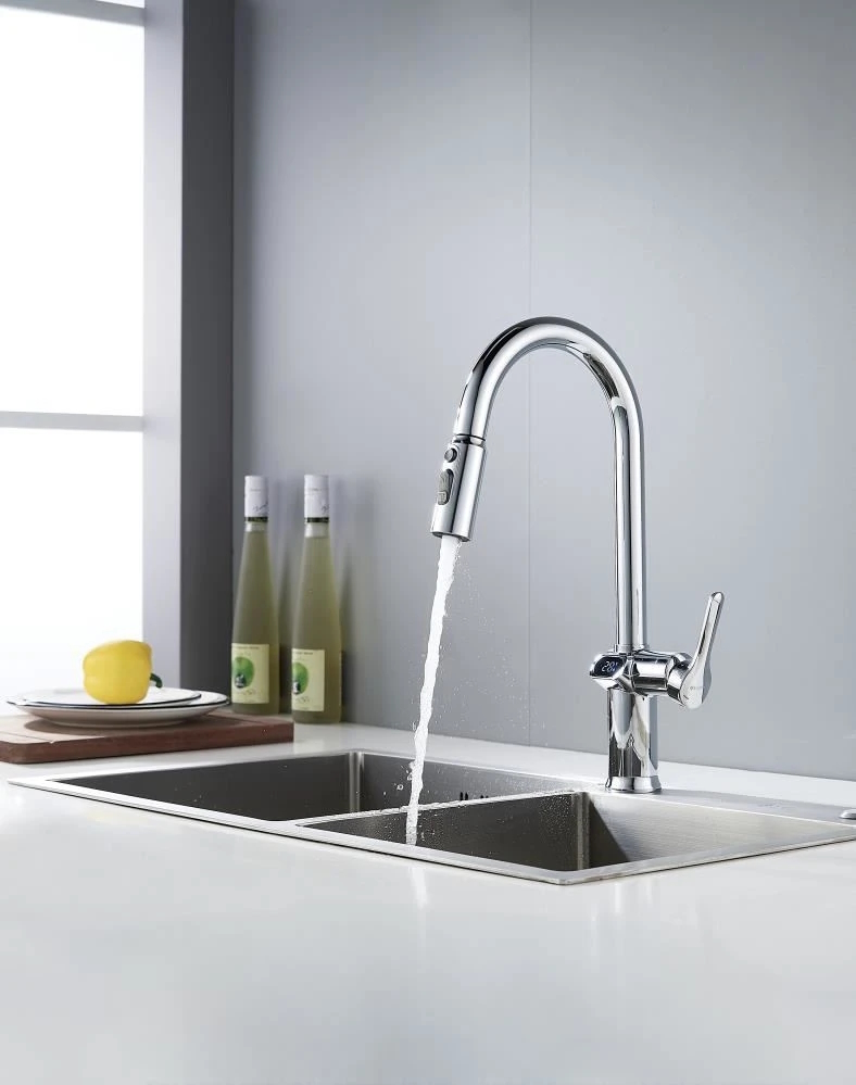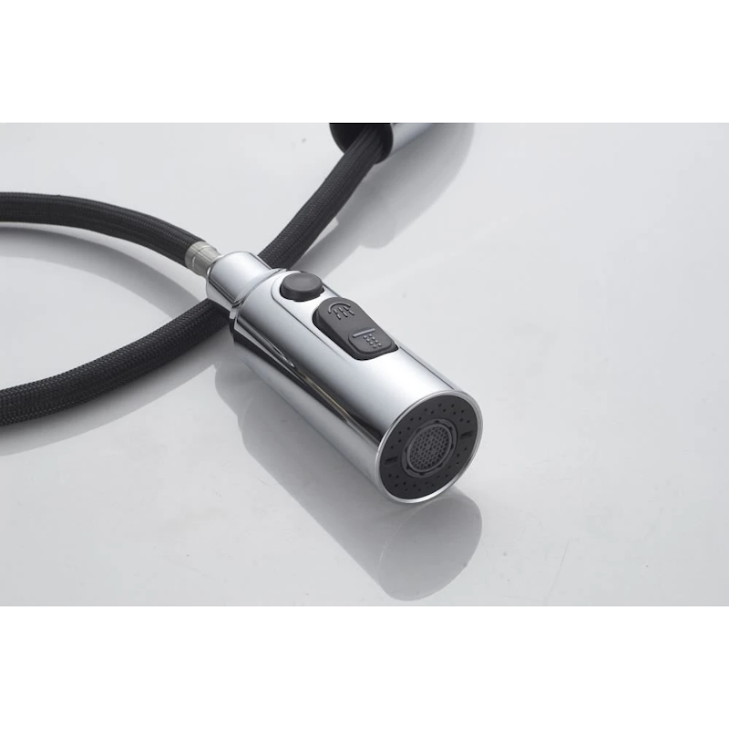 Особенностью модели является выдвижной излив с тремя режимами работы: стандартная струя через аэратор для повседневного использования, режим “душ” для удобного мытья овощей и фруктов, а также две мощные струи-распылители для эффективной очистки сильнозагрязнённых поверхностей.