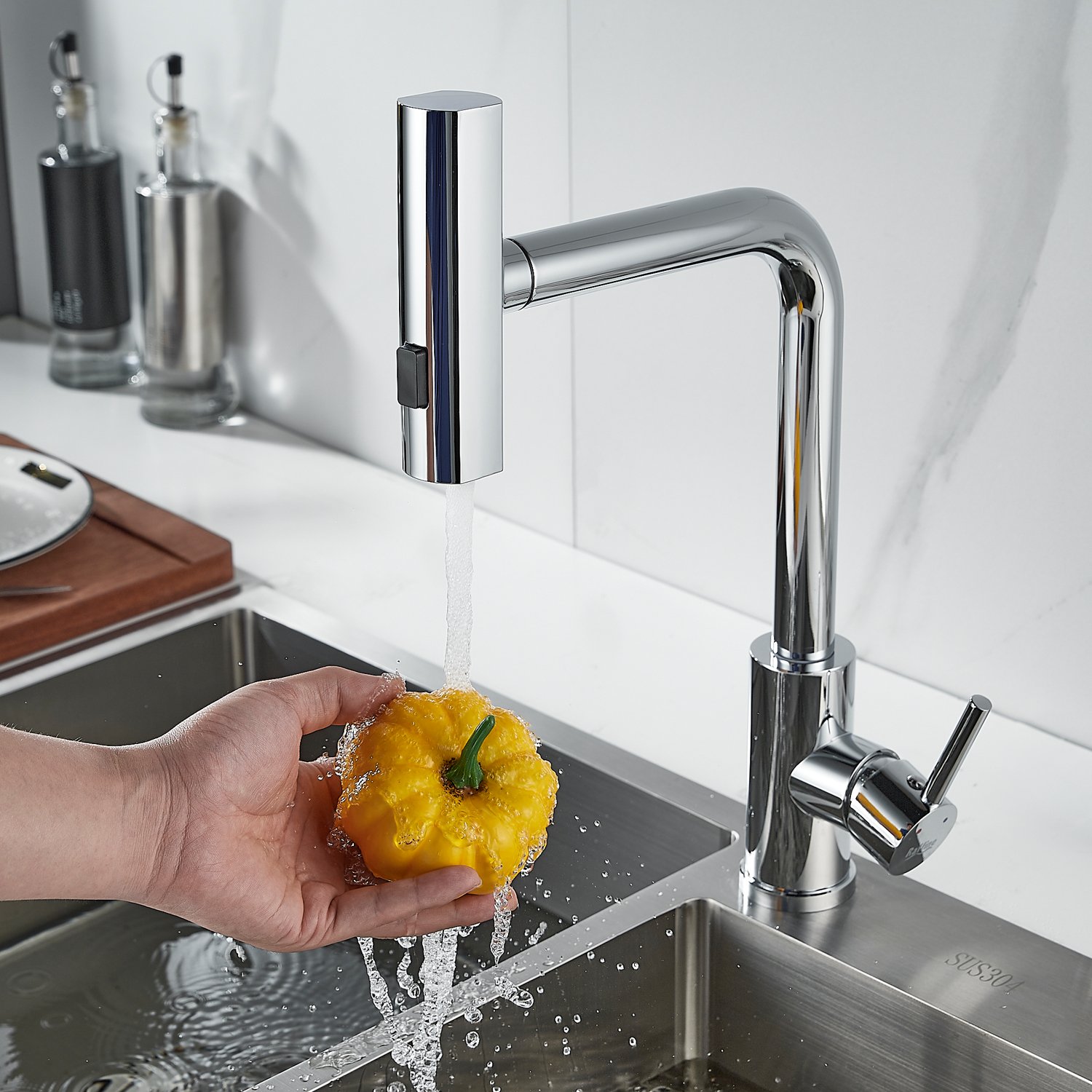Излив предлагает 3 различных режима подачи воды: стандартный режим подходит для повседневного использования, турбо-струя идеальна для удаления сложных загрязнений, а режим широкой струи с мягким напором идеально подходит для быстрой очистки больших поверхностей, например, кухонной посуды с большим диаметром и разделочных досок.