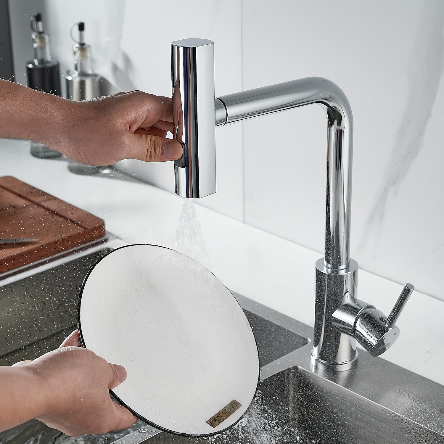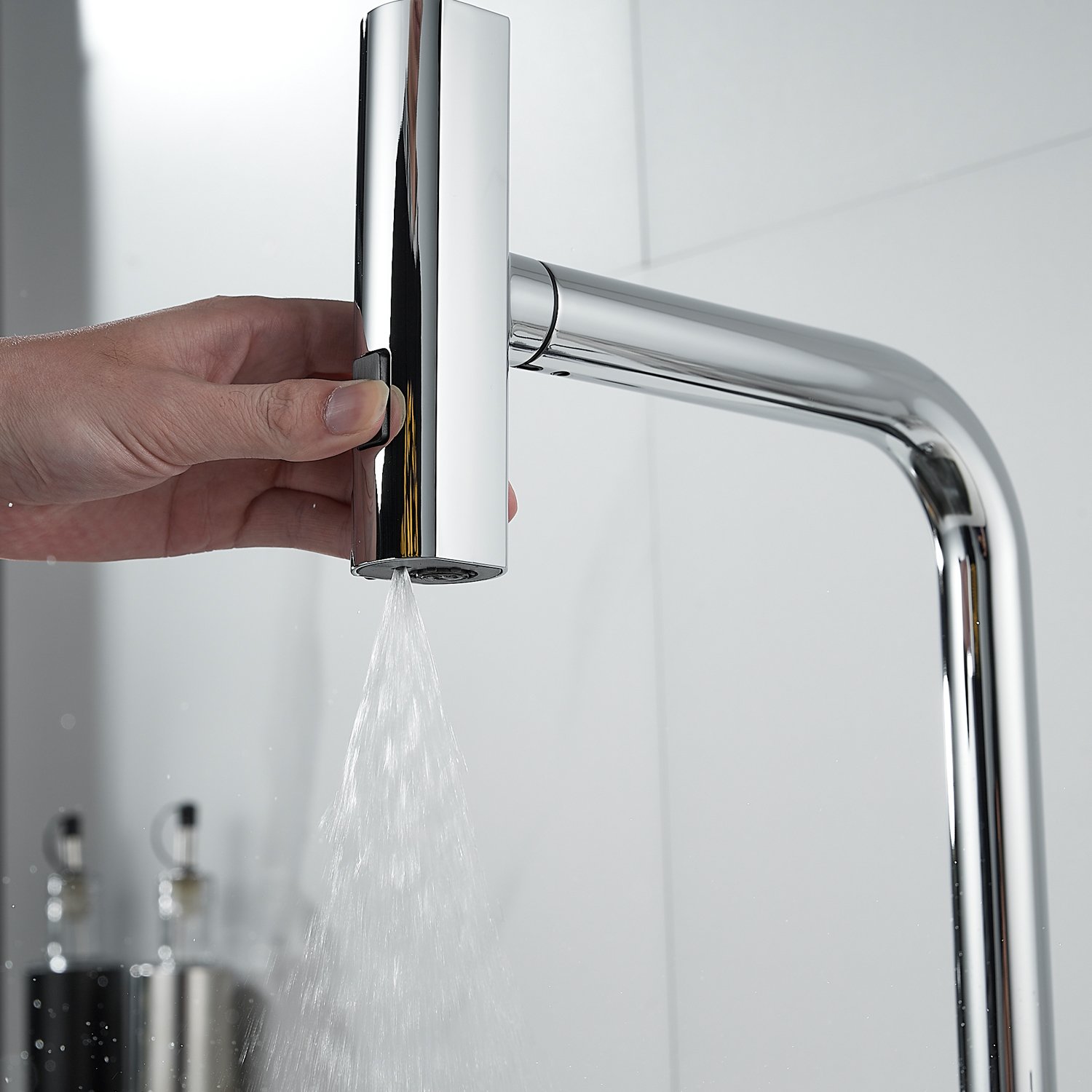 Одним из ключевых преимуществ данного смесителя является съемный выдвижной поворотный излив, который можно легко снять и повернуть в любую сторону. Излив выполнен в том же цвете, что и корпус смесителя, что позволяет ему идеально сочетаться с любым кухонным интерьером.