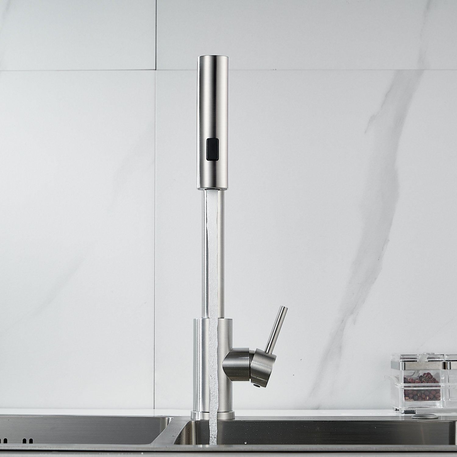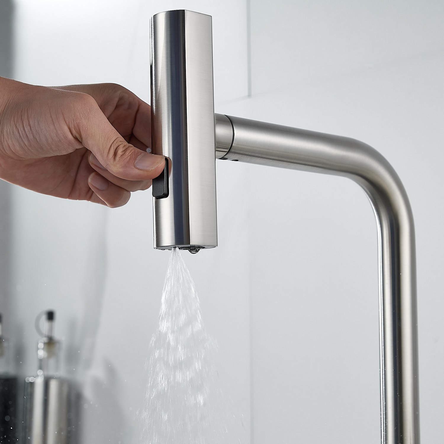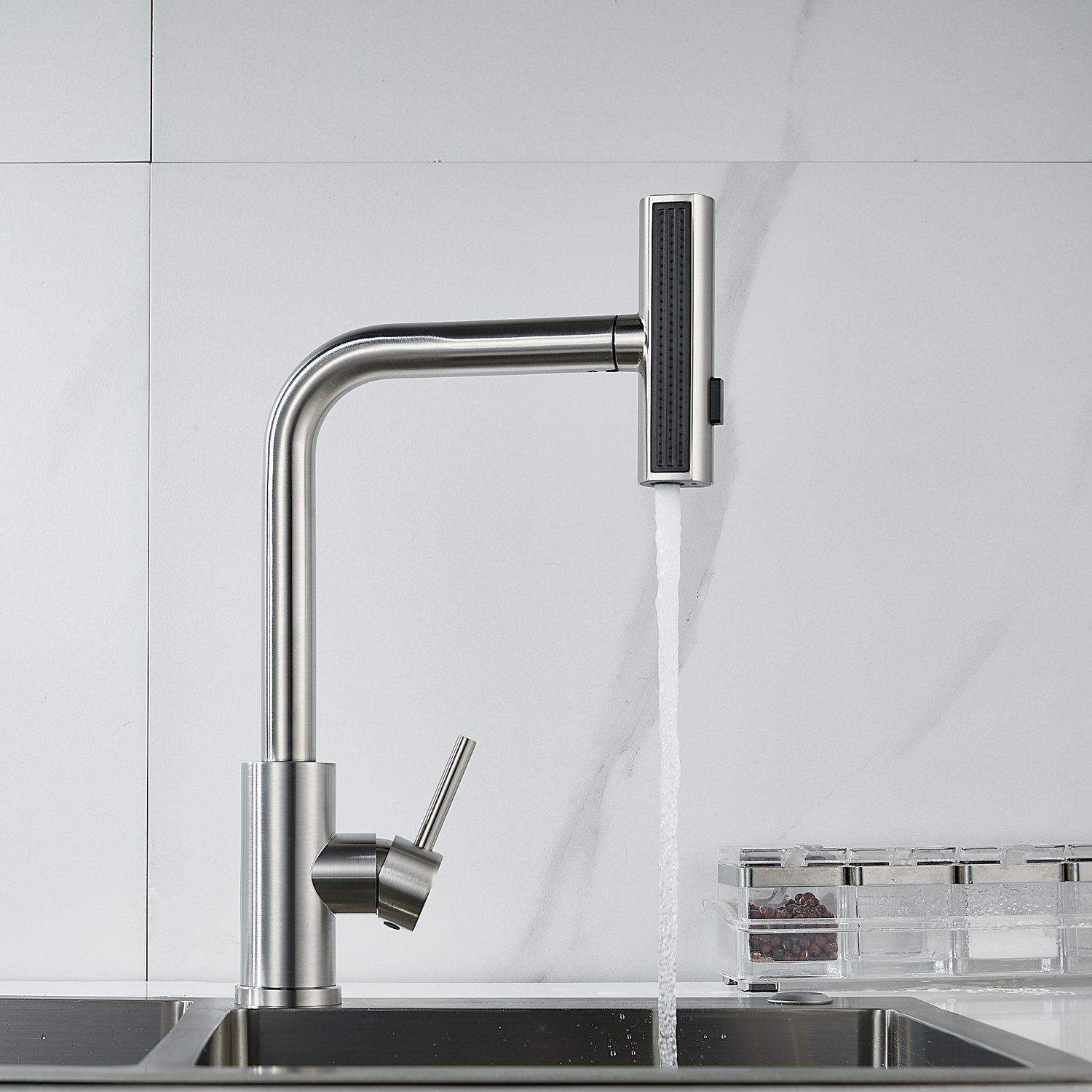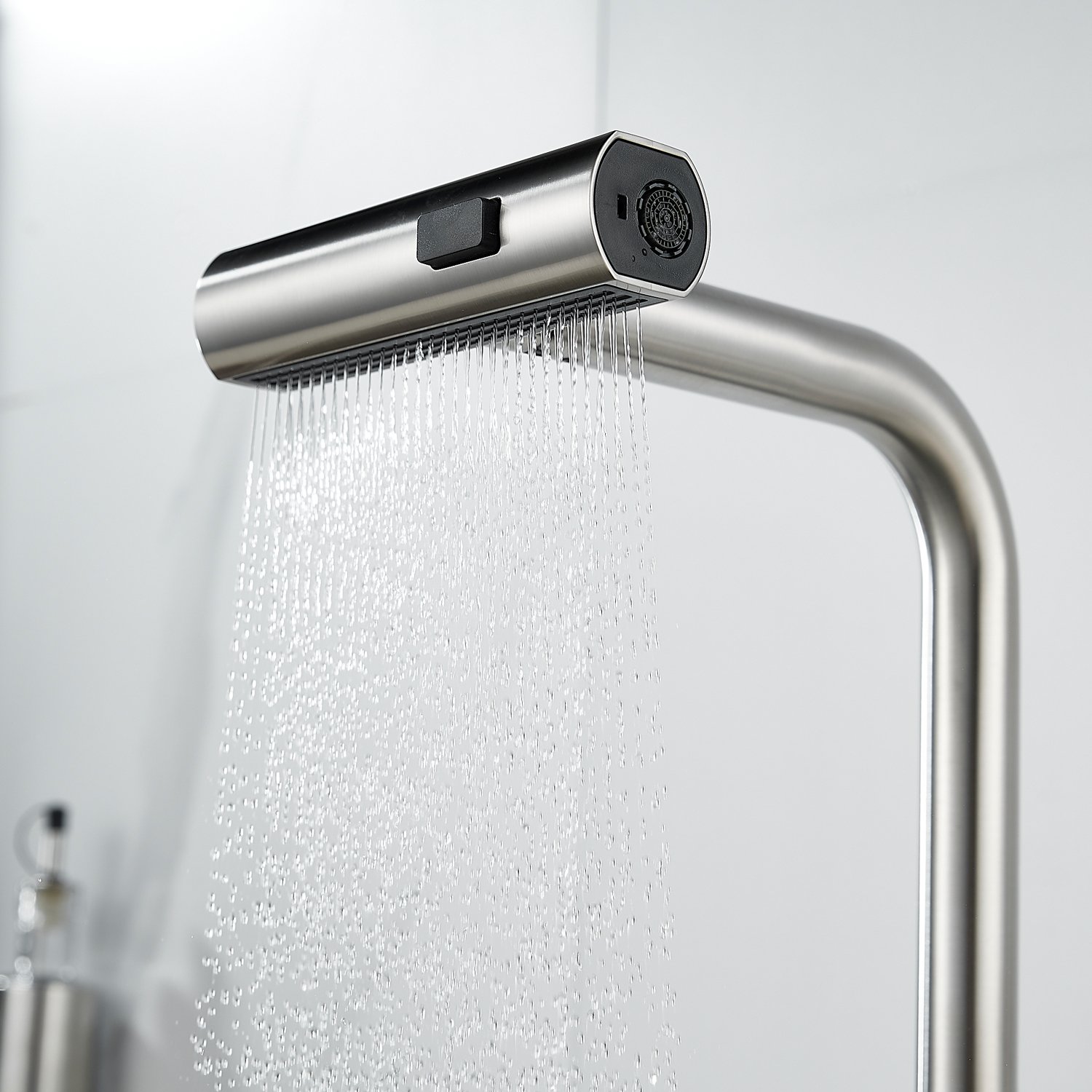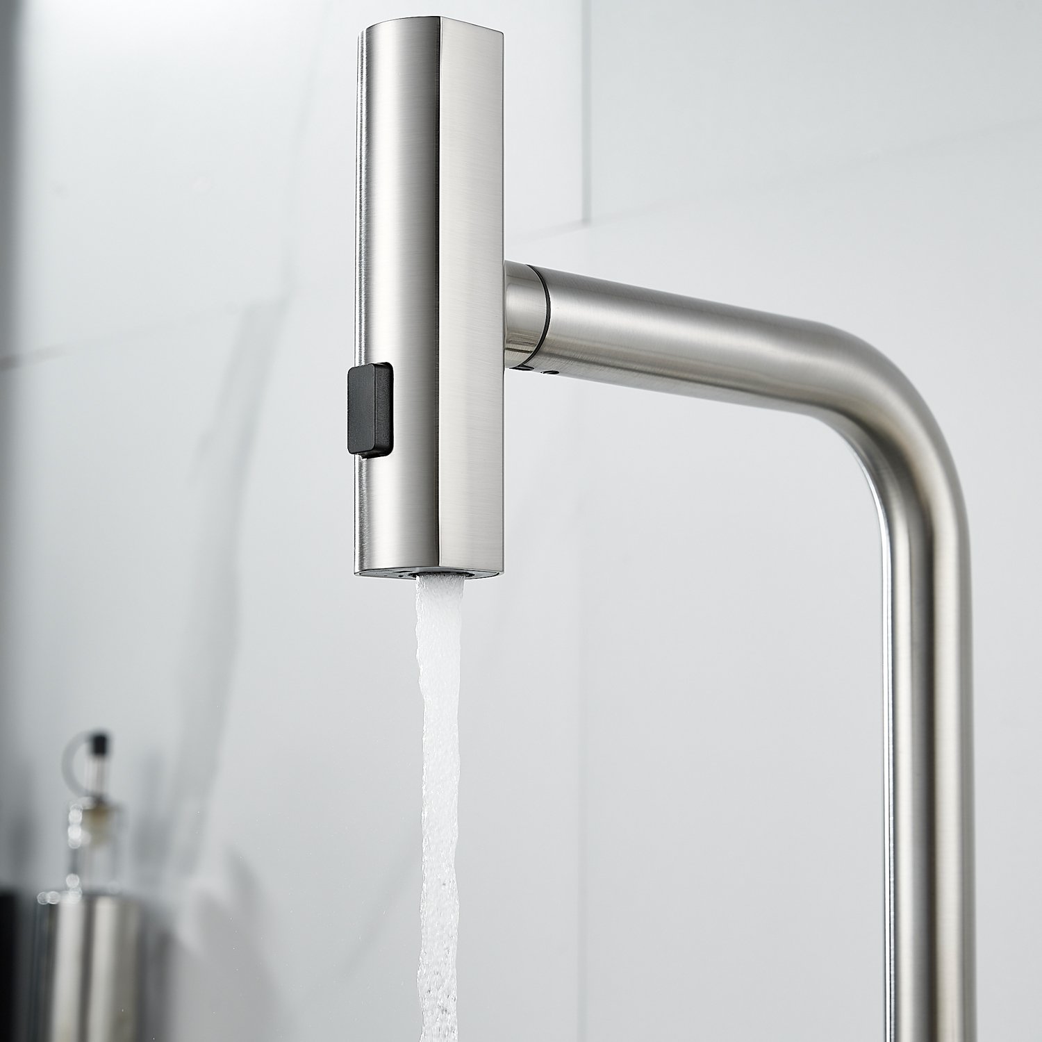 Излив предлагает 3 различных режима подачи воды: стандартный режим подходит для повседневного использования, турбо-струя идеальна для удаления сложных загрязнений, а режим широкой струи с мягким напором идеально подходит для быстрой очистки больших поверхностей, например, кухонной посуды с большим диаметром и разделочных досок.