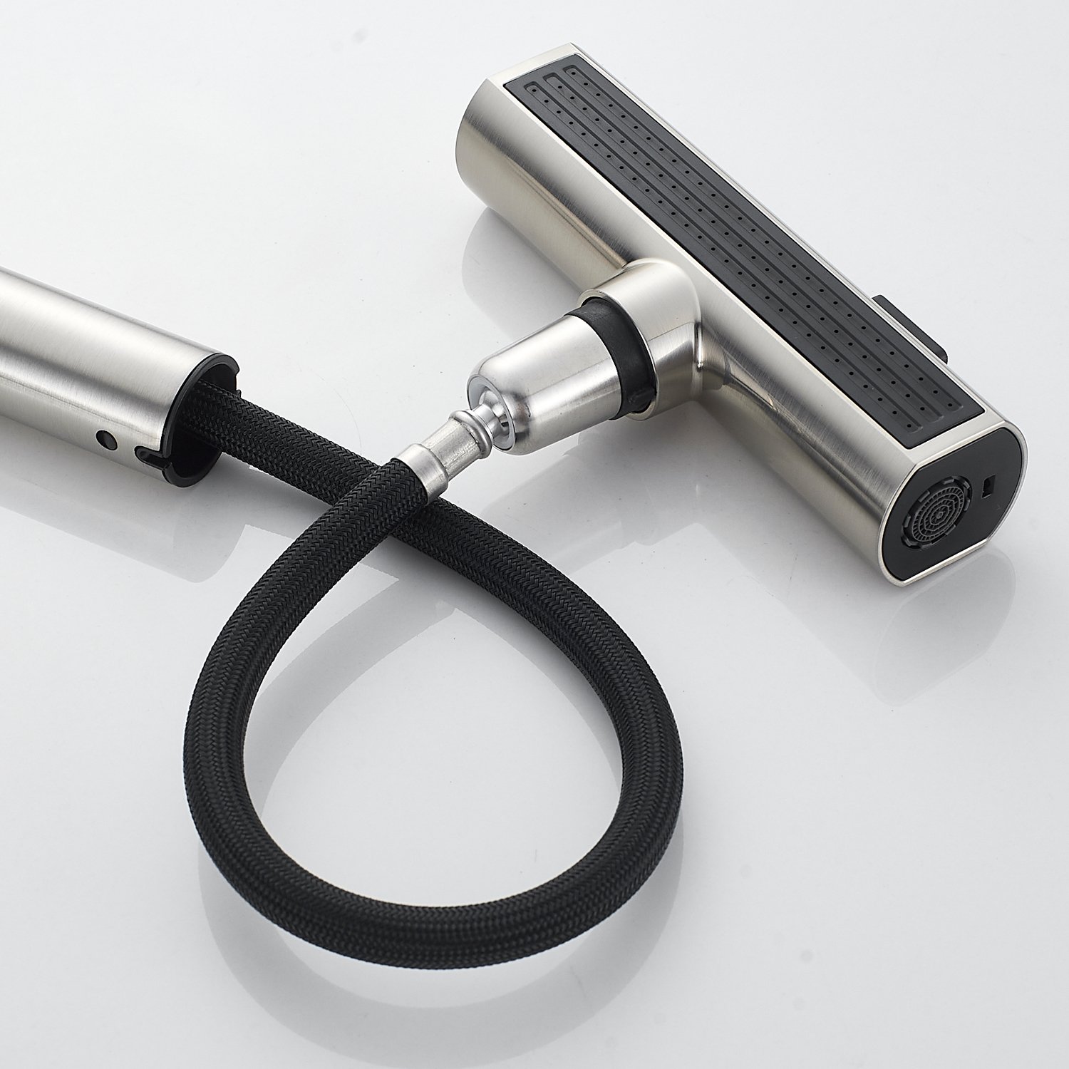 Одним из ключевых преимуществ данного смесителя является съемный выдвижной поворотный излив, который можно легко снять и повернуть в любую сторону. Излив выполнен в том же цвете, что и корпус смесителя, что позволяет ему идеально сочетаться с любым кухонным интерьером.