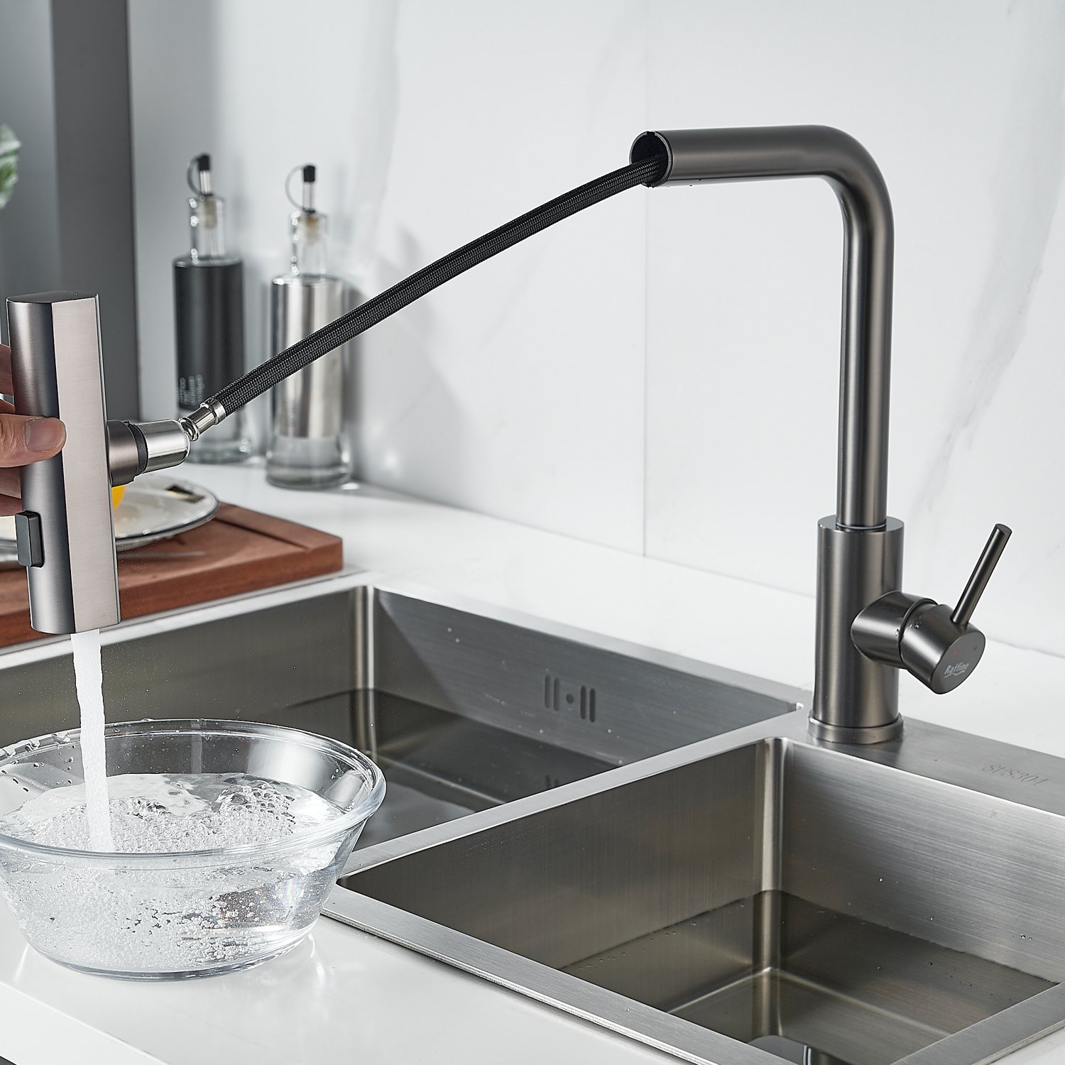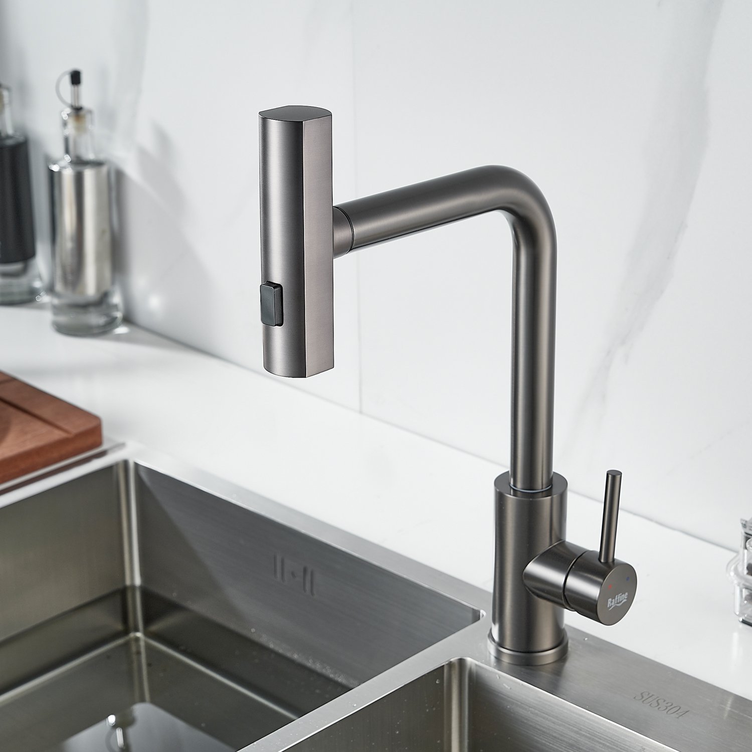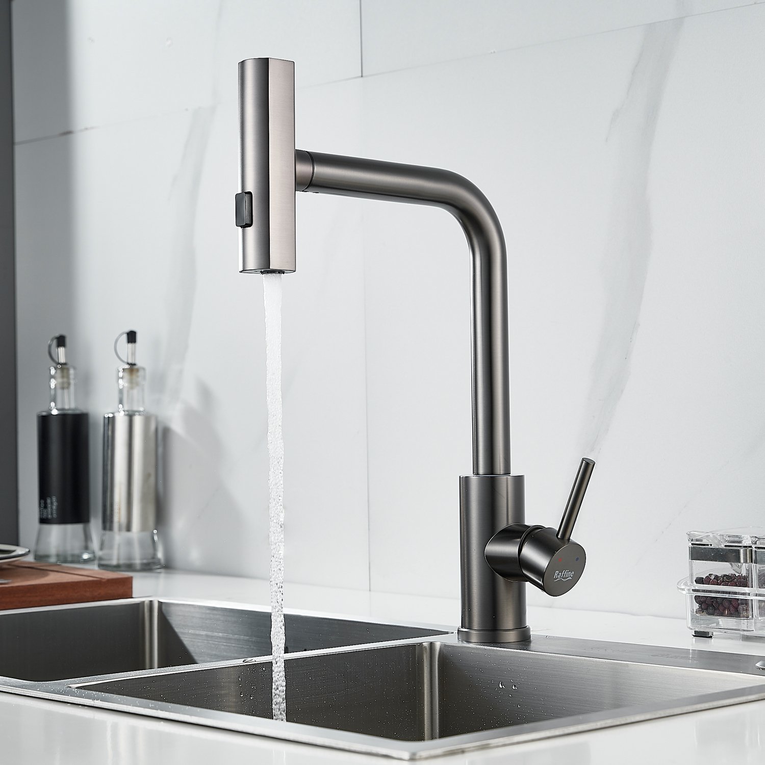 Смеситель для кухни с мультифункциональным изливом Raffine F203T, оружейная сталь