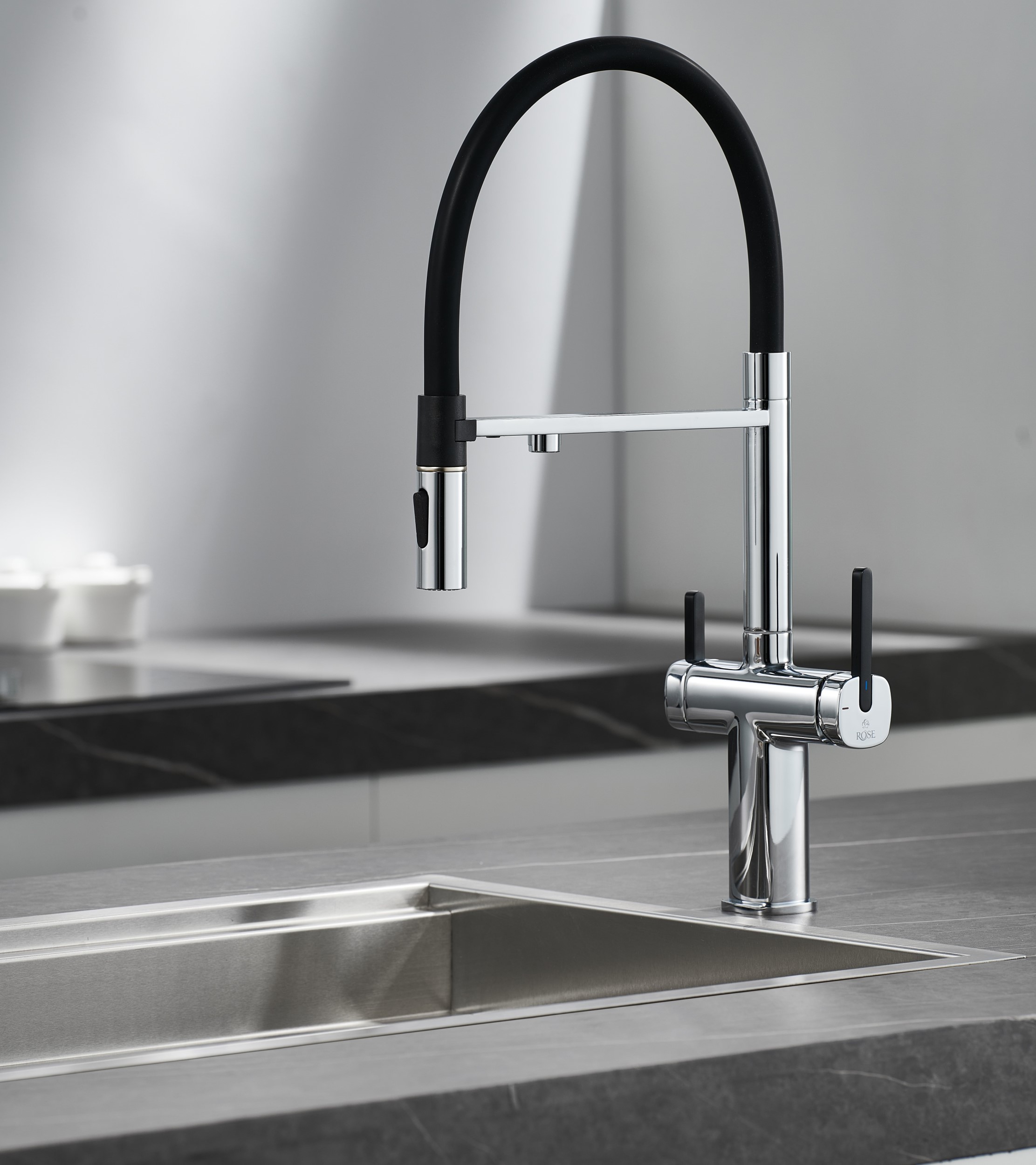 Одним из ключевых преимуществ смесителя Rose является возможность подключения фильтра для воды. Теперь у вас всегда будет доступ к чистой и свежей воде прямо из вашей мойки. Дополнительный излив служит не только для подачи фильтрованной воды, но и как держатель для гибкого излива, когда тот не используется, что добавляет удобства в повседневном использовании.