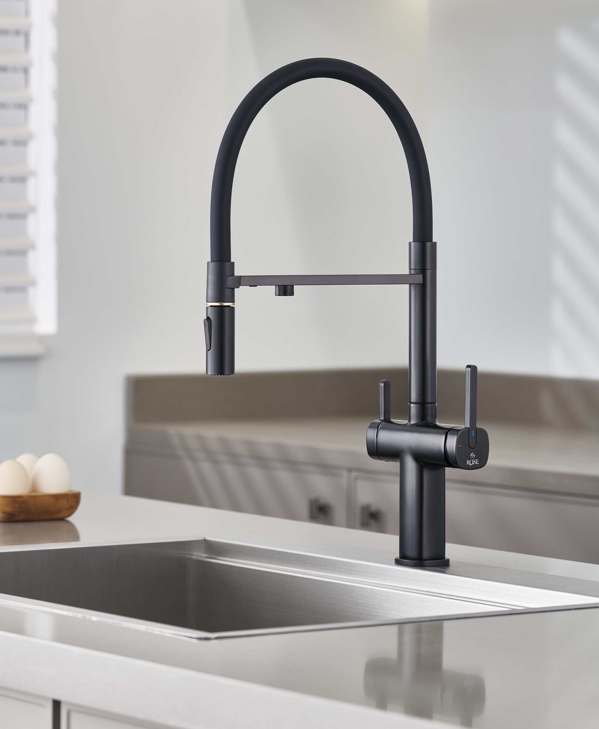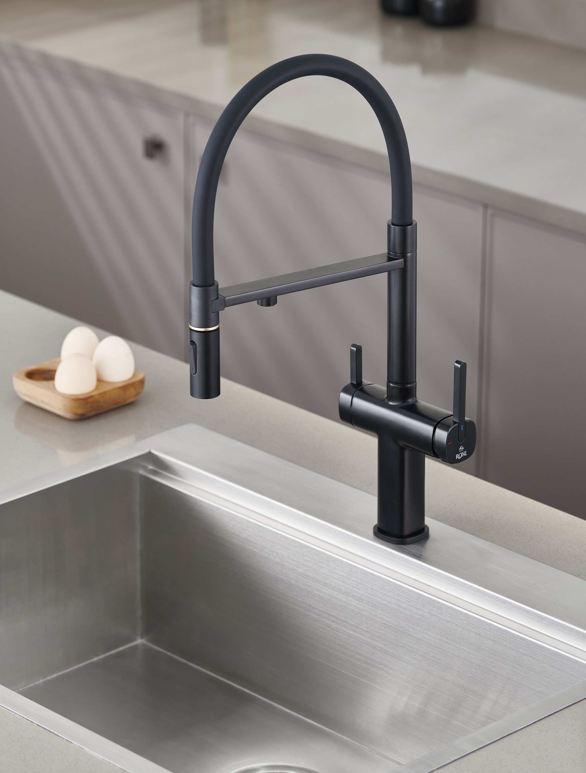 Одним из ключевых преимуществ смесителя Rose является возможность подключения фильтра для воды. Теперь у вас всегда будет доступ к чистой и свежей воде прямо из вашей мойки. Дополнительный излив служит не только для подачи фильтрованной воды, но и как держатель для гибкого излива, когда тот не используется, что добавляет удобства в повседневном использовании.