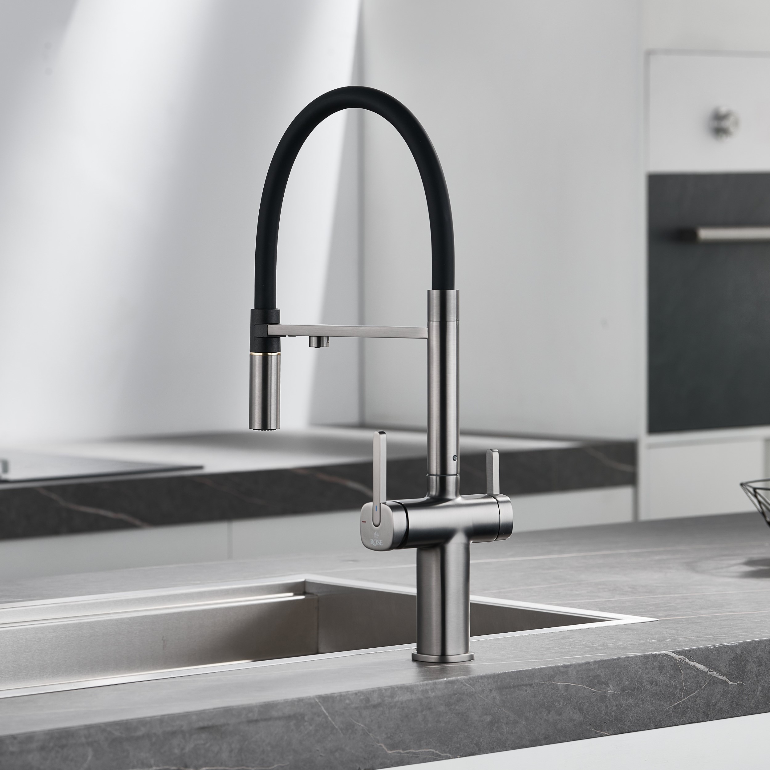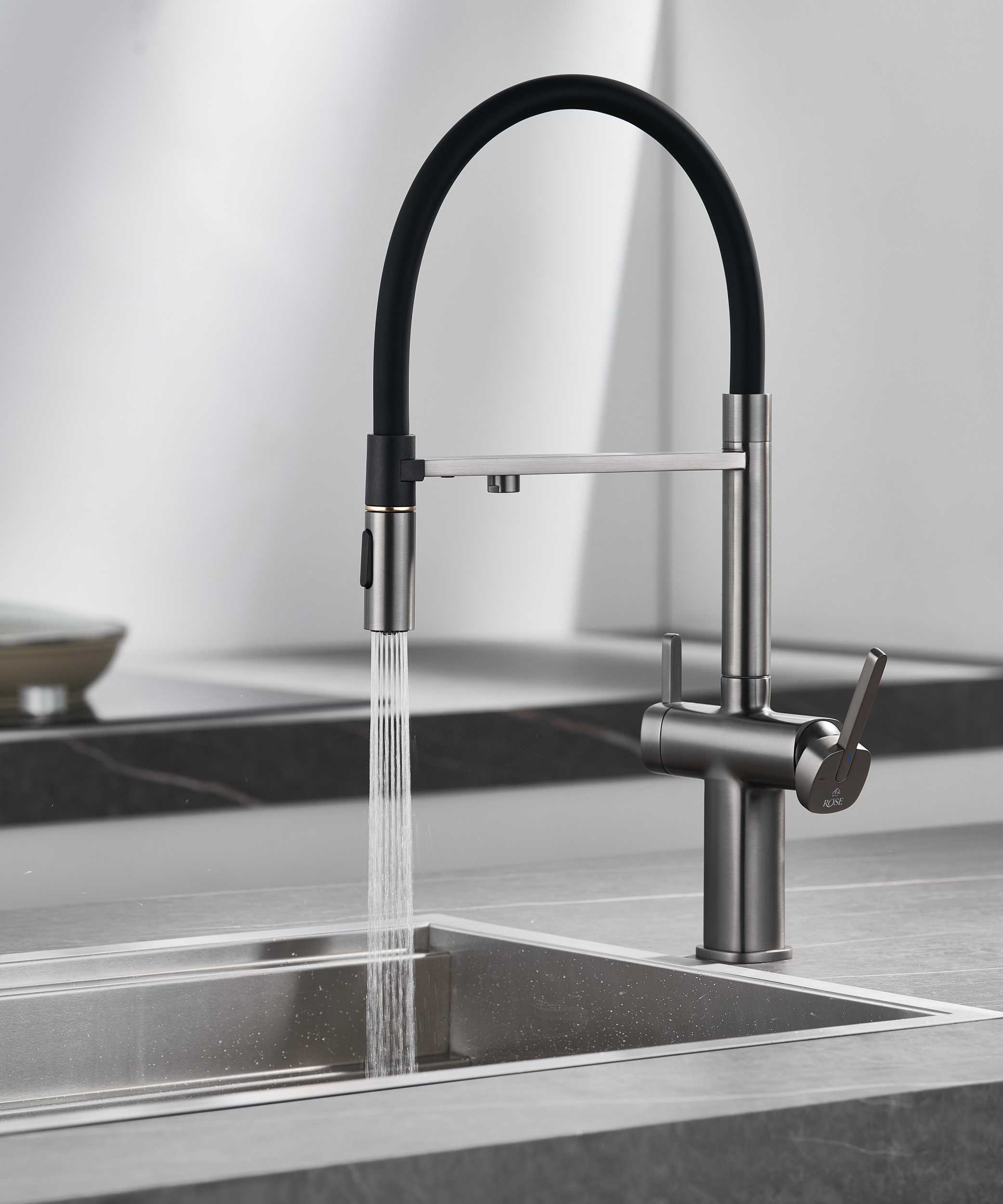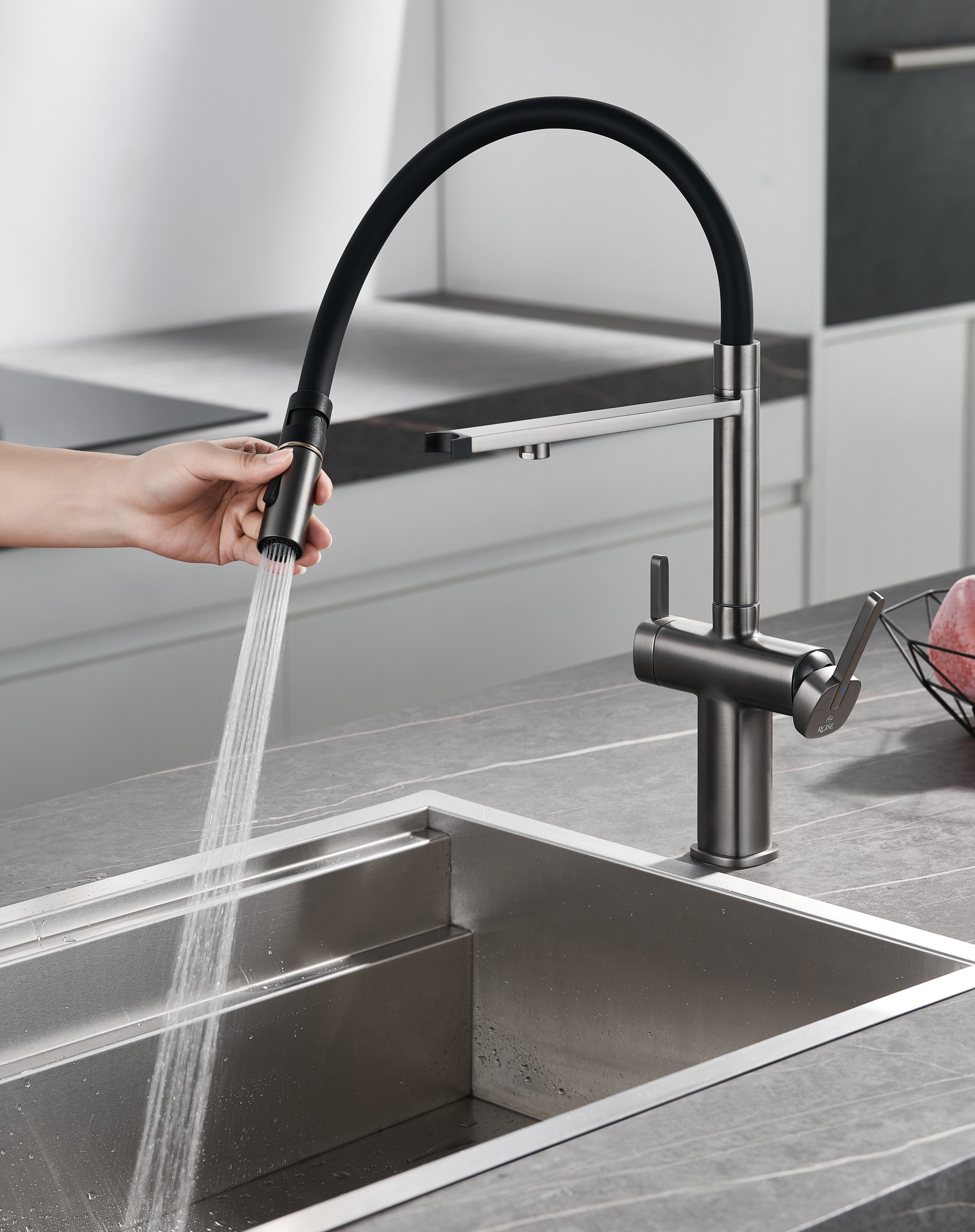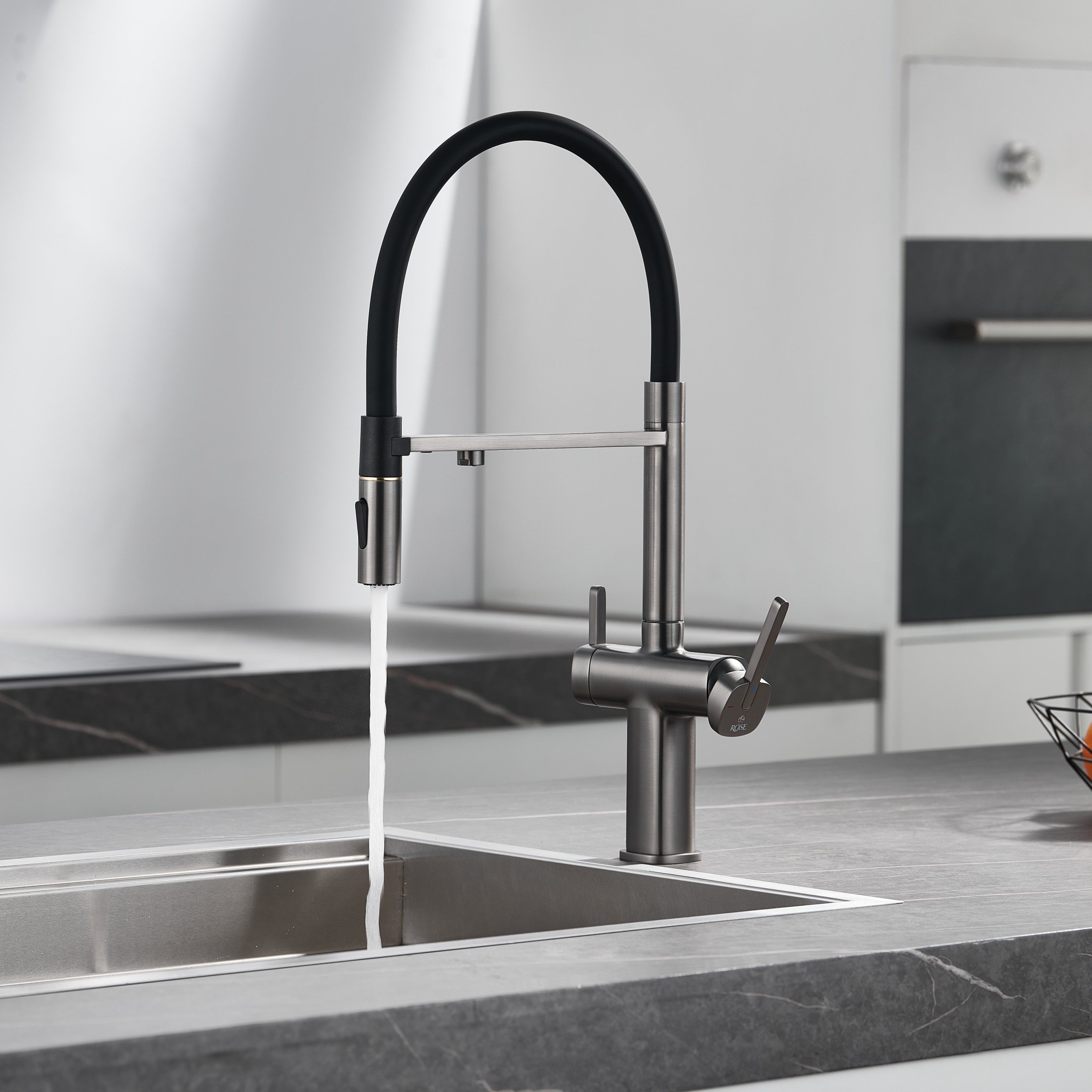 Смеситель для кухни с подключением фильтра для воды Rose R358T, оружейная сталь