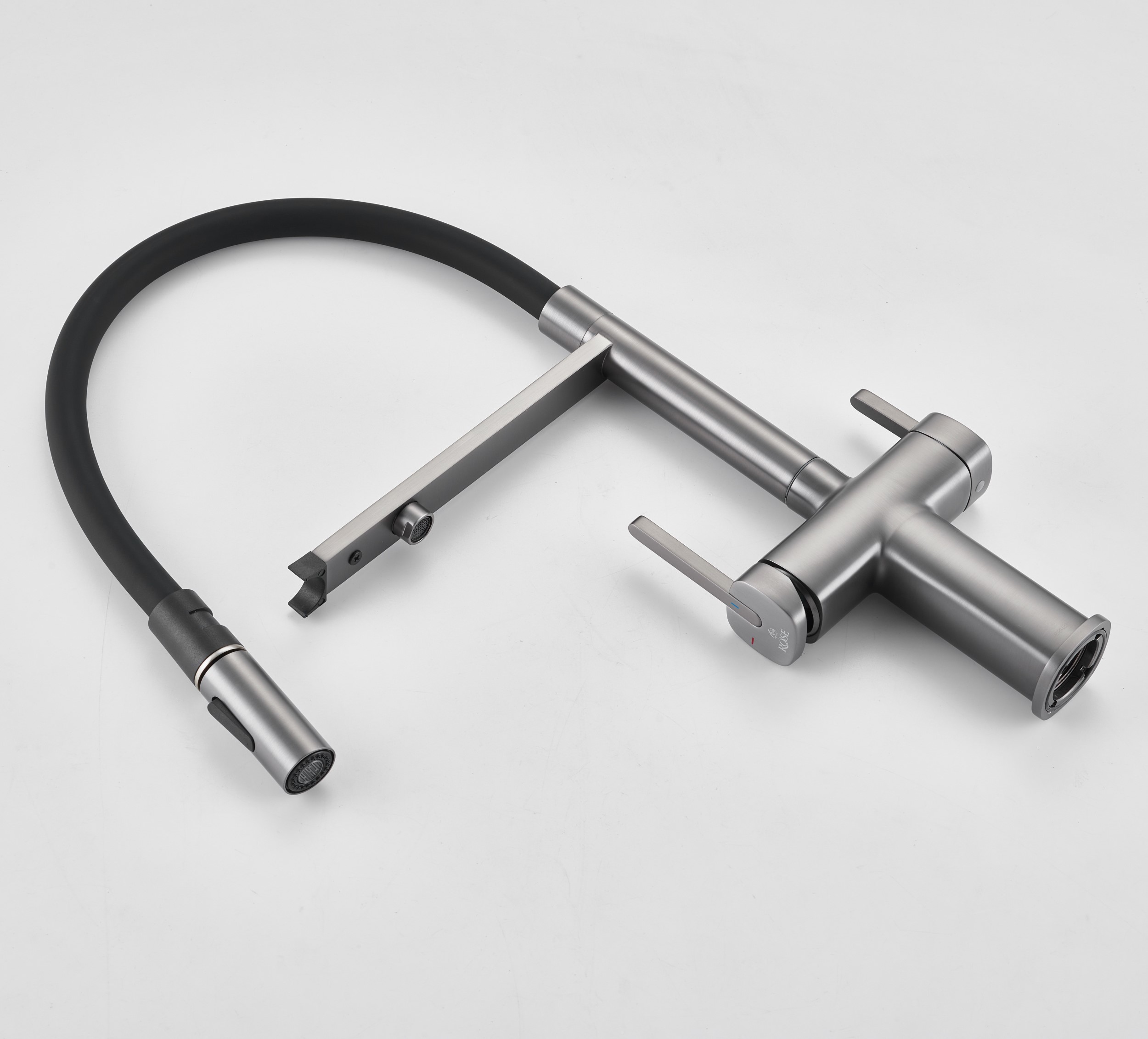 Одним из ключевых преимуществ смесителя Rose является возможность подключения фильтра для воды. Теперь у вас всегда будет доступ к чистой и свежей воде прямо из вашей мойки. Дополнительный излив служит не только для подачи фильтрованной воды, но и как держатель для гибкого излива, когда тот не используется, что добавляет удобства в повседневном использовании.