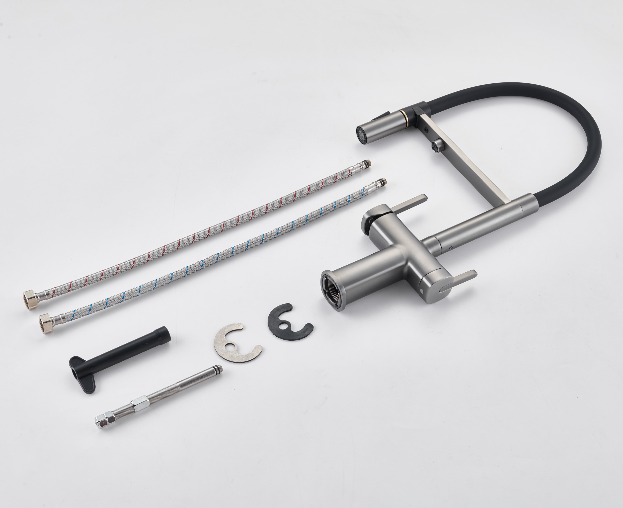 Смеситель для кухонной мойки Rose - идеальное решение для вашей кухни! Изготовленный из прочной и надежной латуни, он гарантирует долговечность и стабильность на многие годы. Гибкий поворотный силиконовый излив с режимом “душ” обеспечивает максимальный комфорт при использовании, позволяя легко настроить струю воды под ваши нужды.