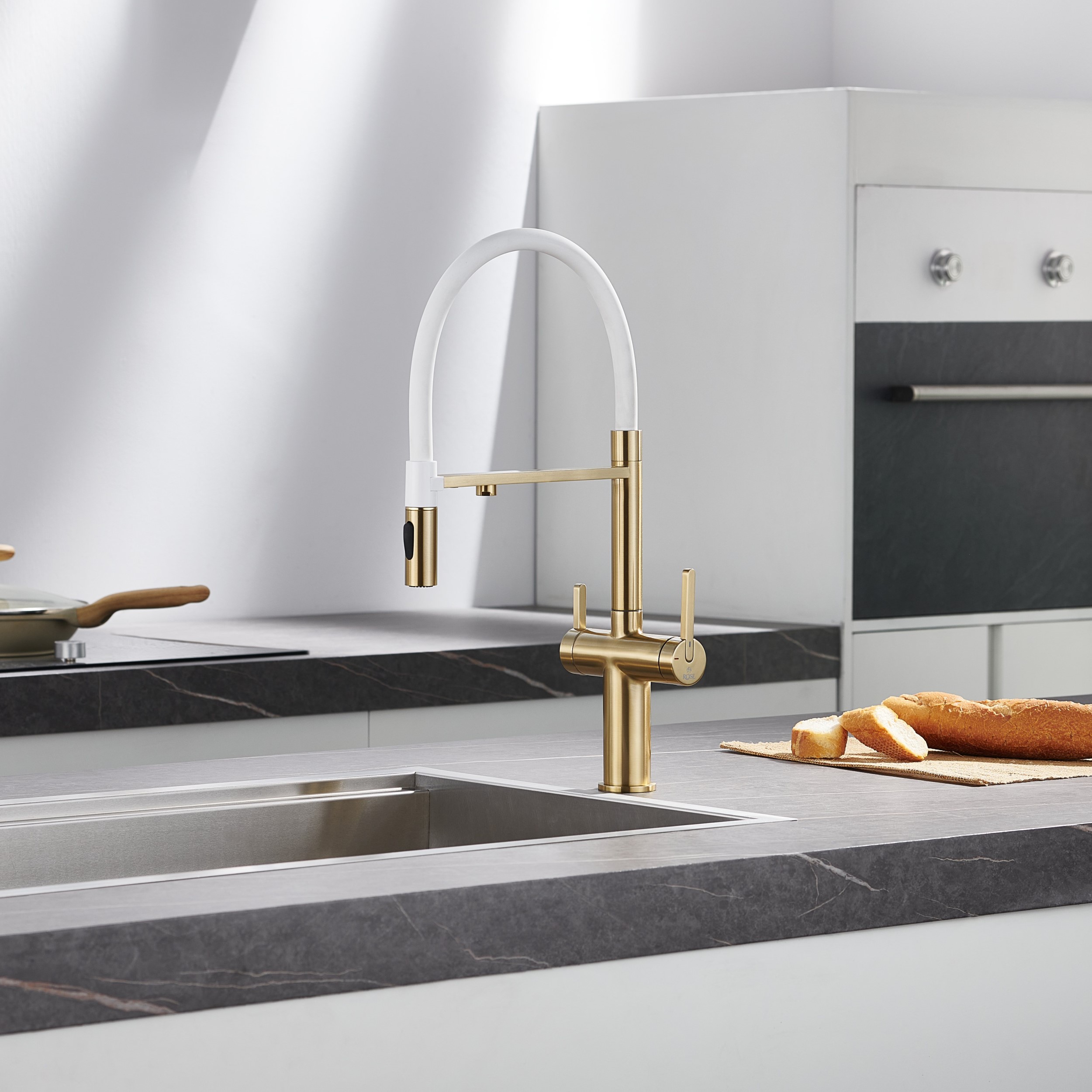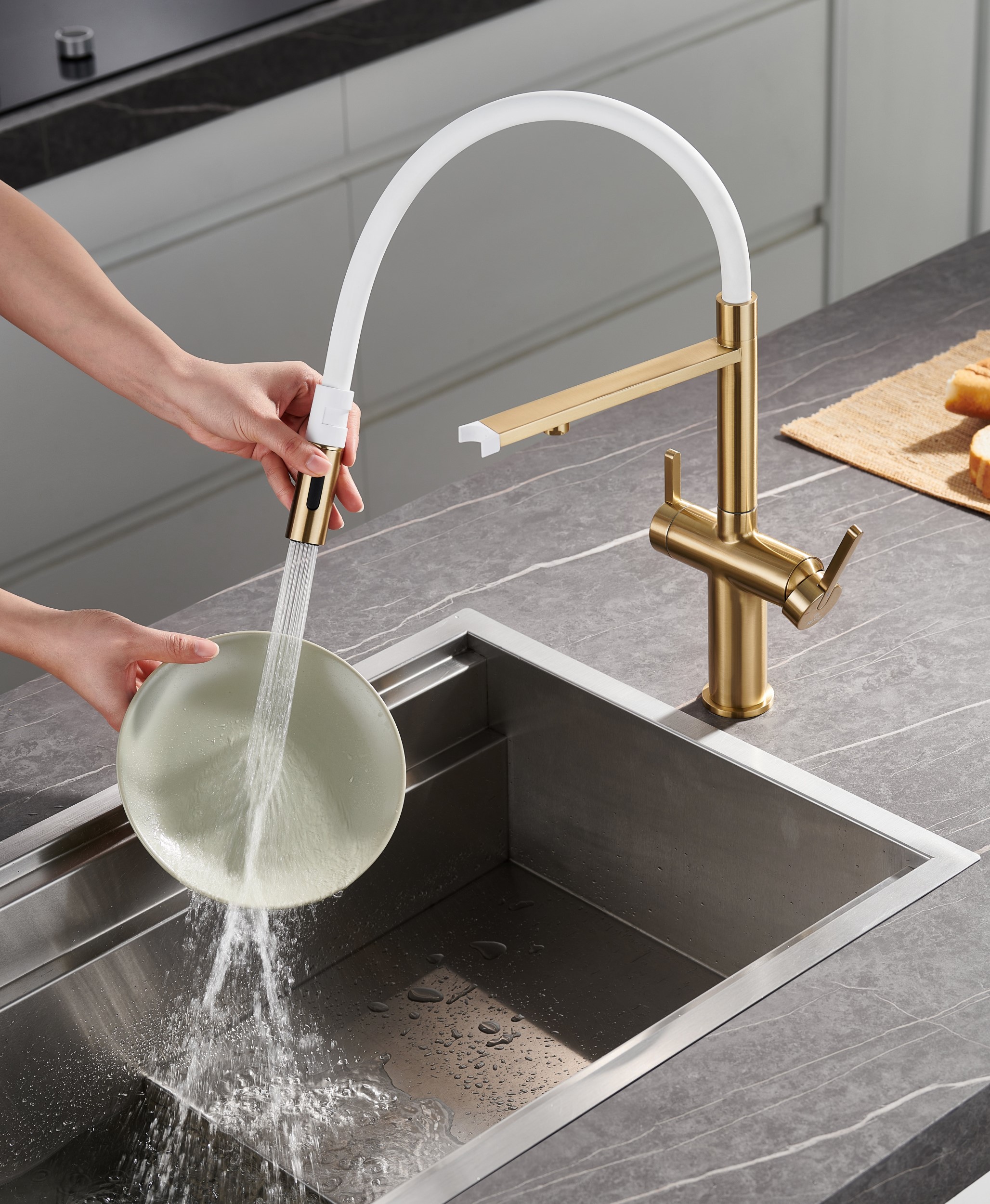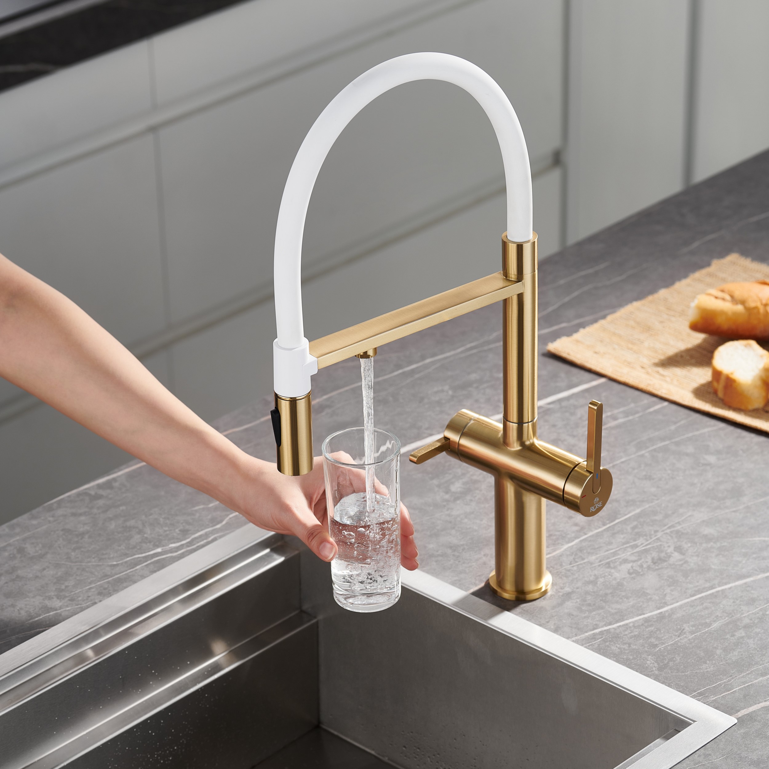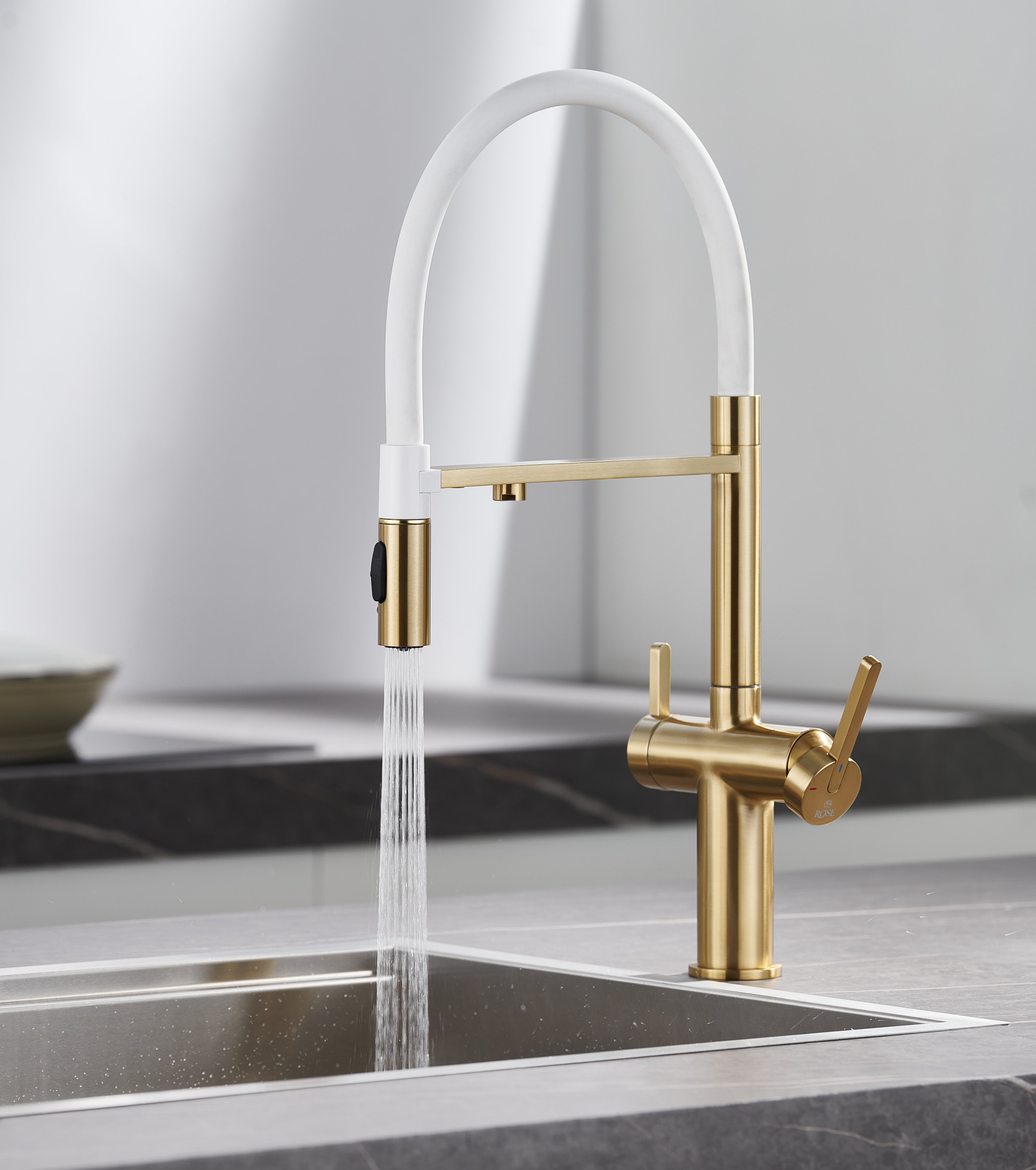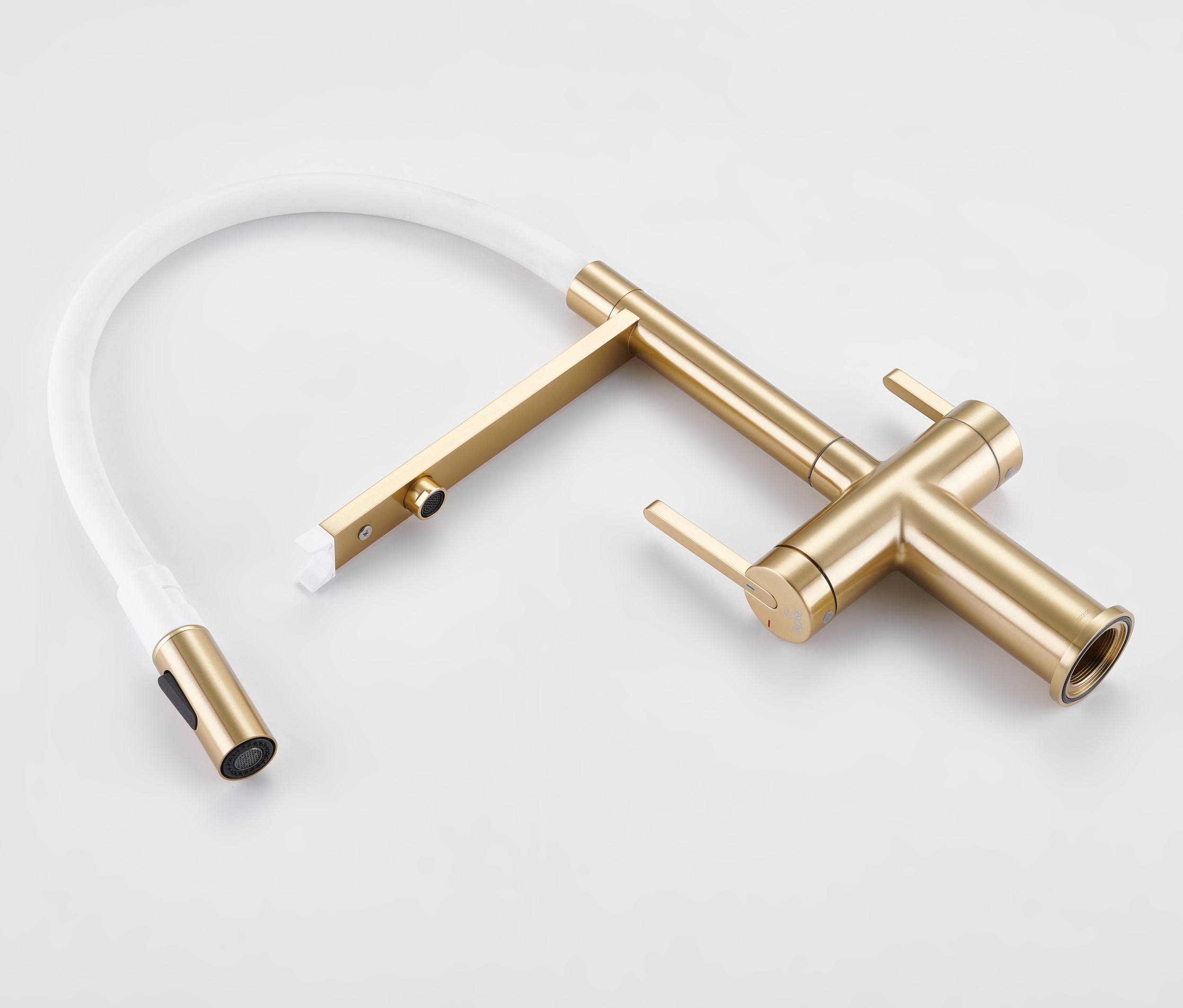 Смеситель для кухни с подключением фильтра для воды Rose R458G, золотой сатин