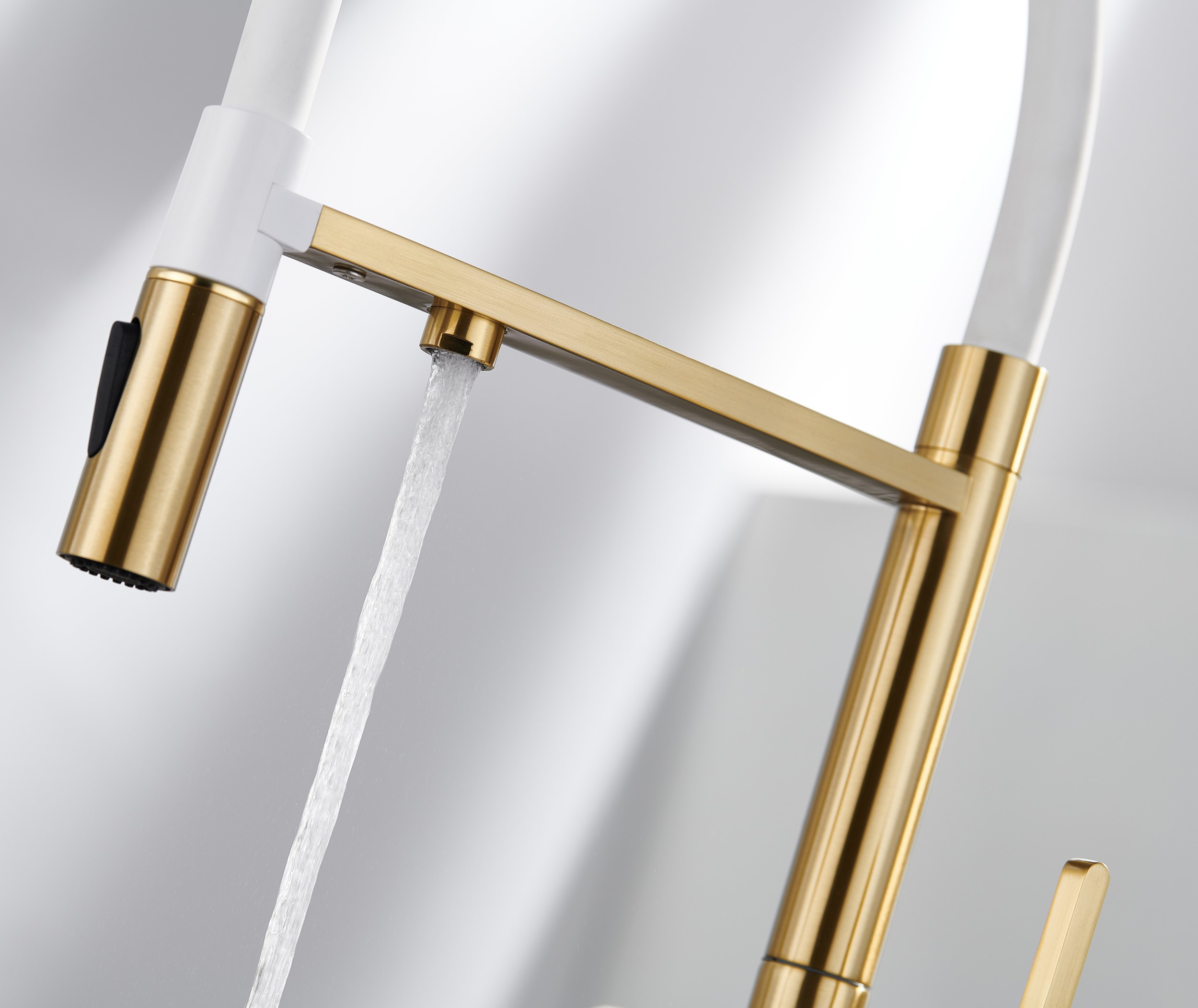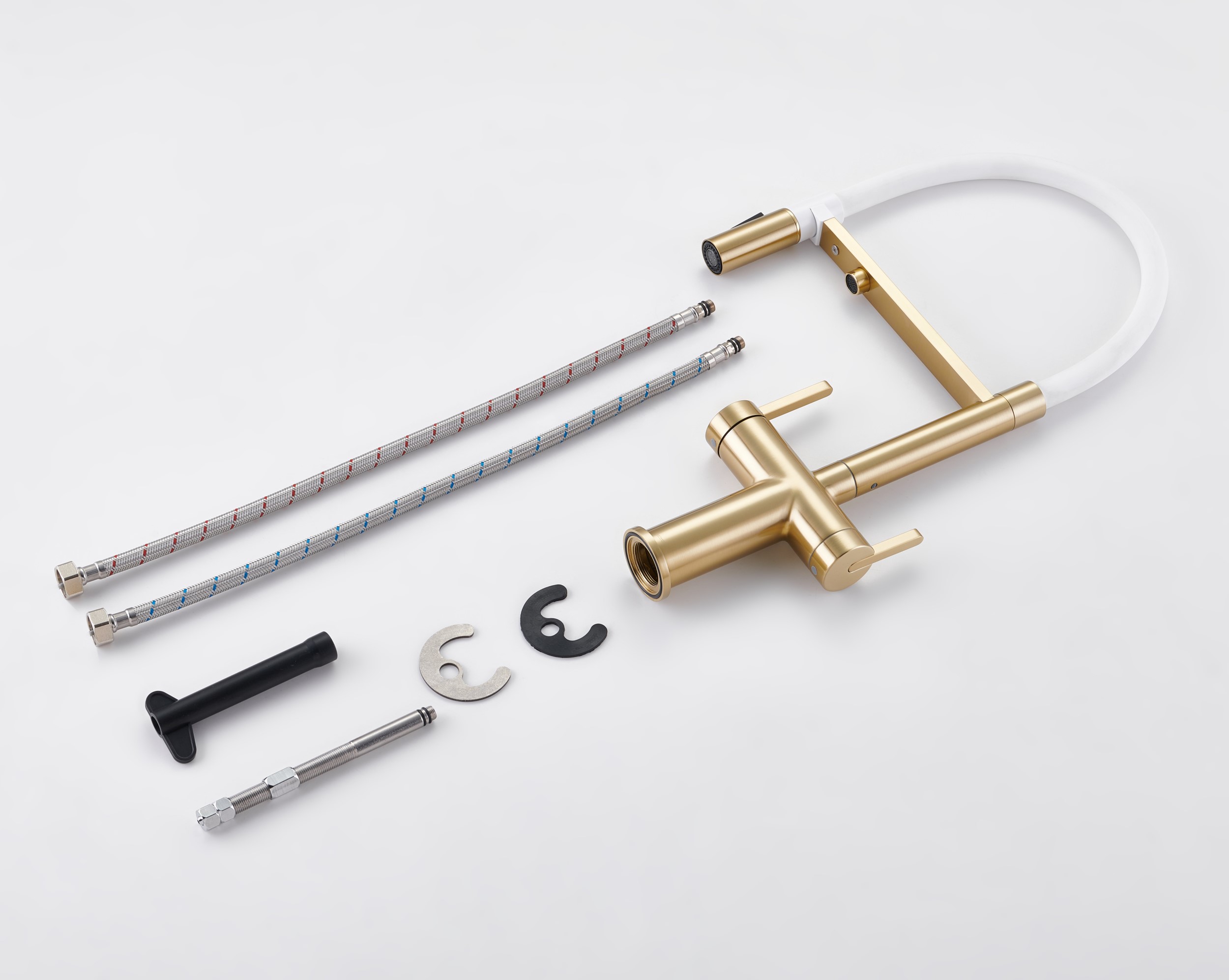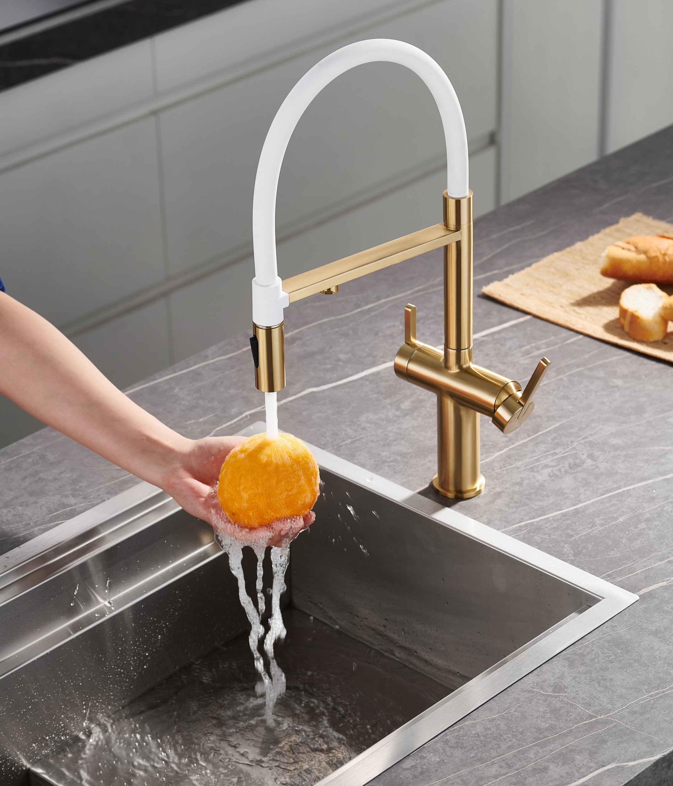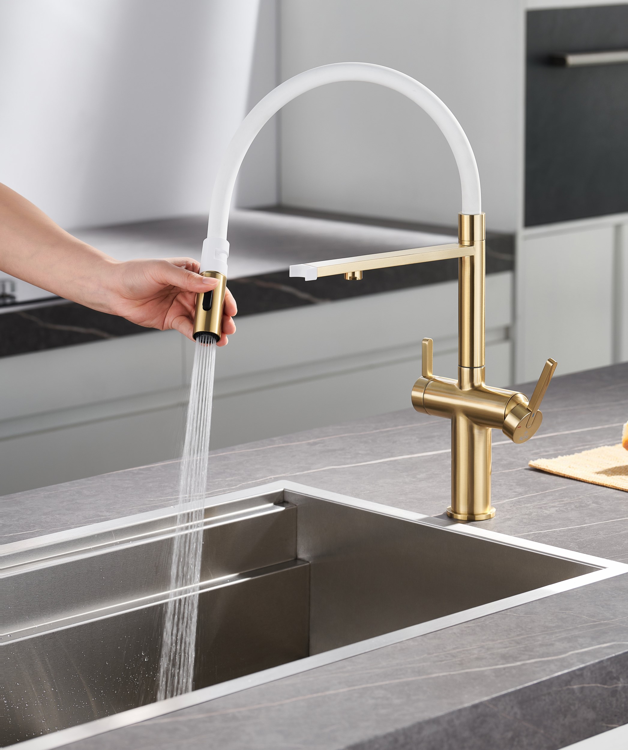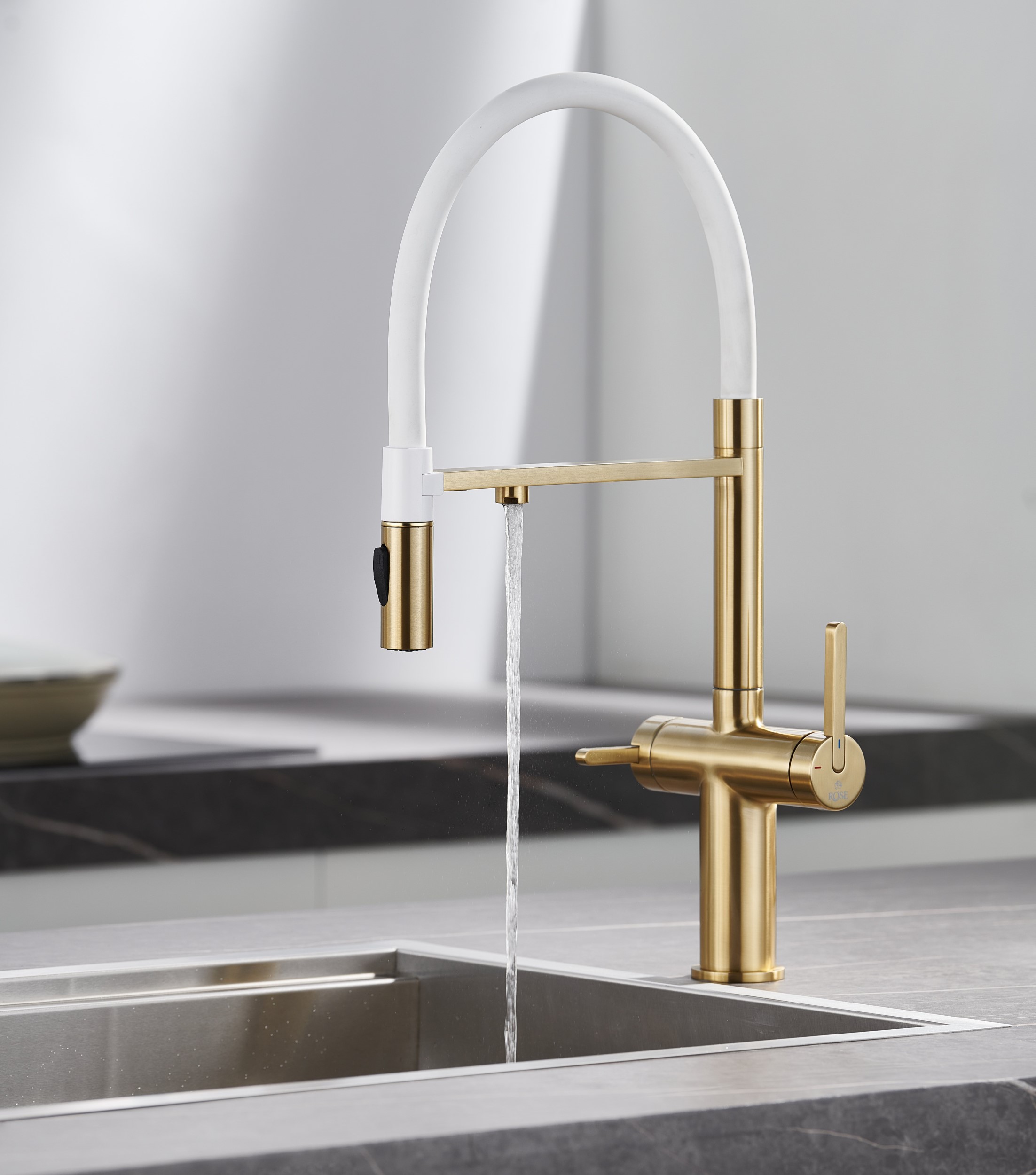 Смеситель для кухни с подключением фильтра для воды Rose R458G, золотой сатин