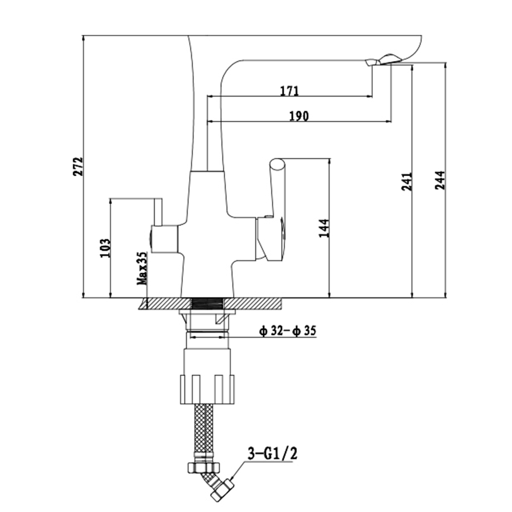 Смеситель для кухни с подключением фильтра GranFest 3223, иней. Материал: латунь. Управление: рычажное. Подключение фильтра для воды: да. Гибкая подводка. Отверстия для монтажа: 1.