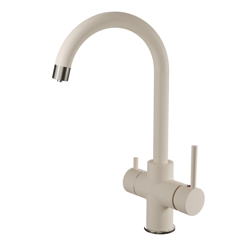 Смеситель для кухни с подключением фильтра GranFestGF-Z-5422, белый. Материал: нержавеющая сталь. Управление: рычажное. Подключение фильтра для воды: да. Гибкая подводка. Отверстия для монтажа: 1.