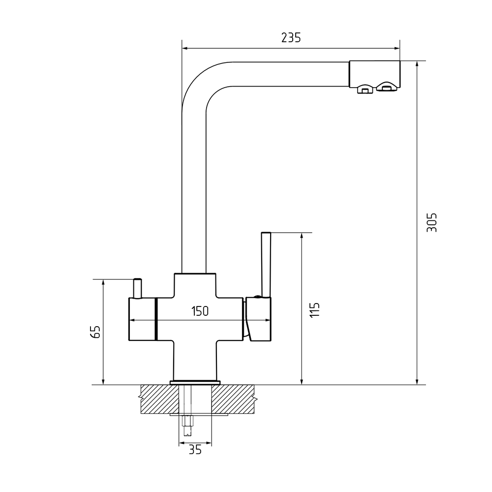 Смеситель для кухни с подключением фильтра GranFestGF-Z-5423, песочный. Материал: нержавеющая сталь. Управление: рычажное. Подключение фильтра для воды: да. Гибкая подводка. Отверстия для монтажа: 1.