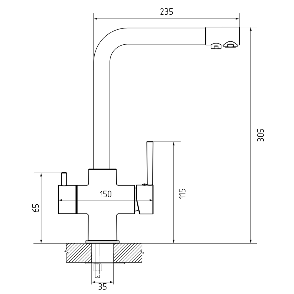 Смеситель для кухни с подключением фильтра GranFestGF-Z-5423, темно-серый. Материал: нержавеющая сталь. Управление: рычажное. Подключение фильтра для воды: да. Гибкая подводка. Отверстия для монтажа: 1.
