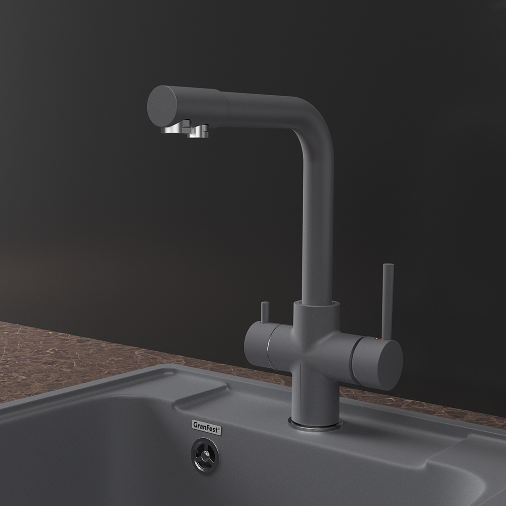 Смеситель для кухни с подключением фильтра GranFestGF-Z-5423, темно-серый