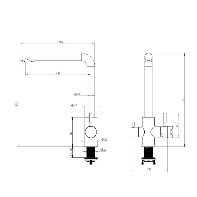 Обновите вашу кухню со смесителем для кухни с подключением фильтра Knotlor STREAMLINE SS-08!