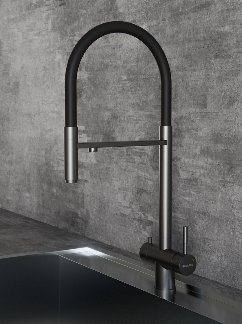 Смеситель для кухни с подключением фильтра Knotlor SS-16/GM, вороненая сталь
