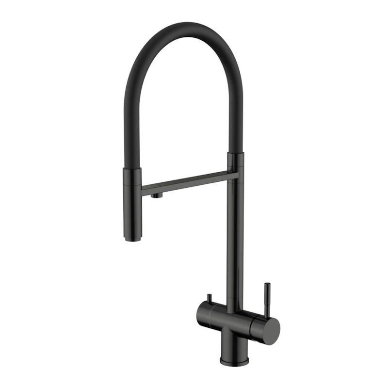 Смеситель из вороненой стали с гибким изливом и фильтром для воды. Надежность и стиль в одной модели.
