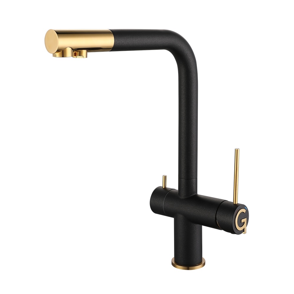 Смеситель для кухни с подключением фильтра Rivelato Lugano 1523513, антрацит/золото. Материал: нержавеющая сталь. Управление: рычажное. Подключение фильтра для воды: да. Комплектация: смеситель, гибкая подводка. Гарантийный срок на смеситель 5 лет (гарантийный срок на покрытие 1 год).