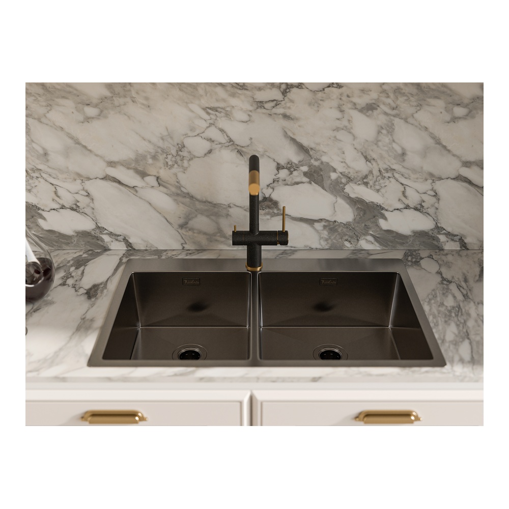 Смеситель для кухни с подключением фильтра Rivelato Lugano 1523513, антрацит/золото