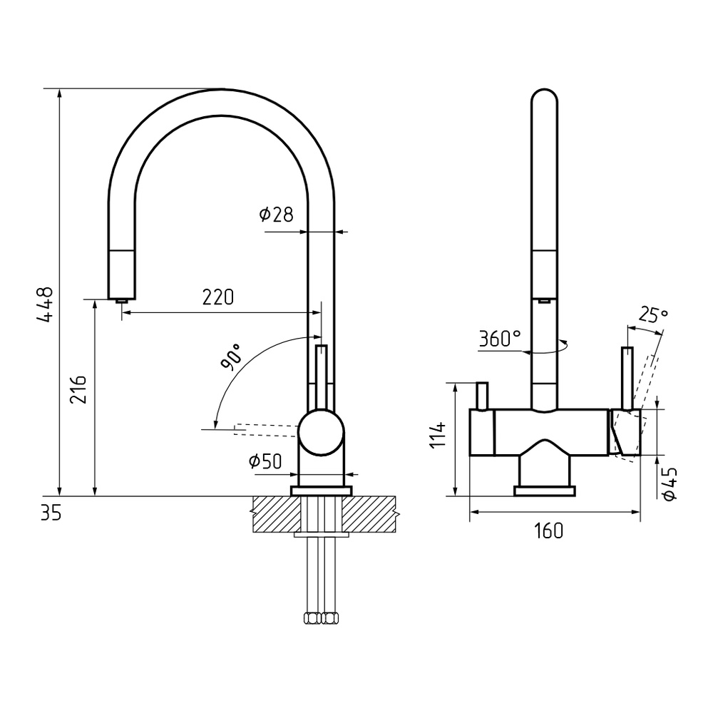 Смеситель для кухни с подключением фильтра Rivelato Trevi 2433505, нержавеющая сталь
