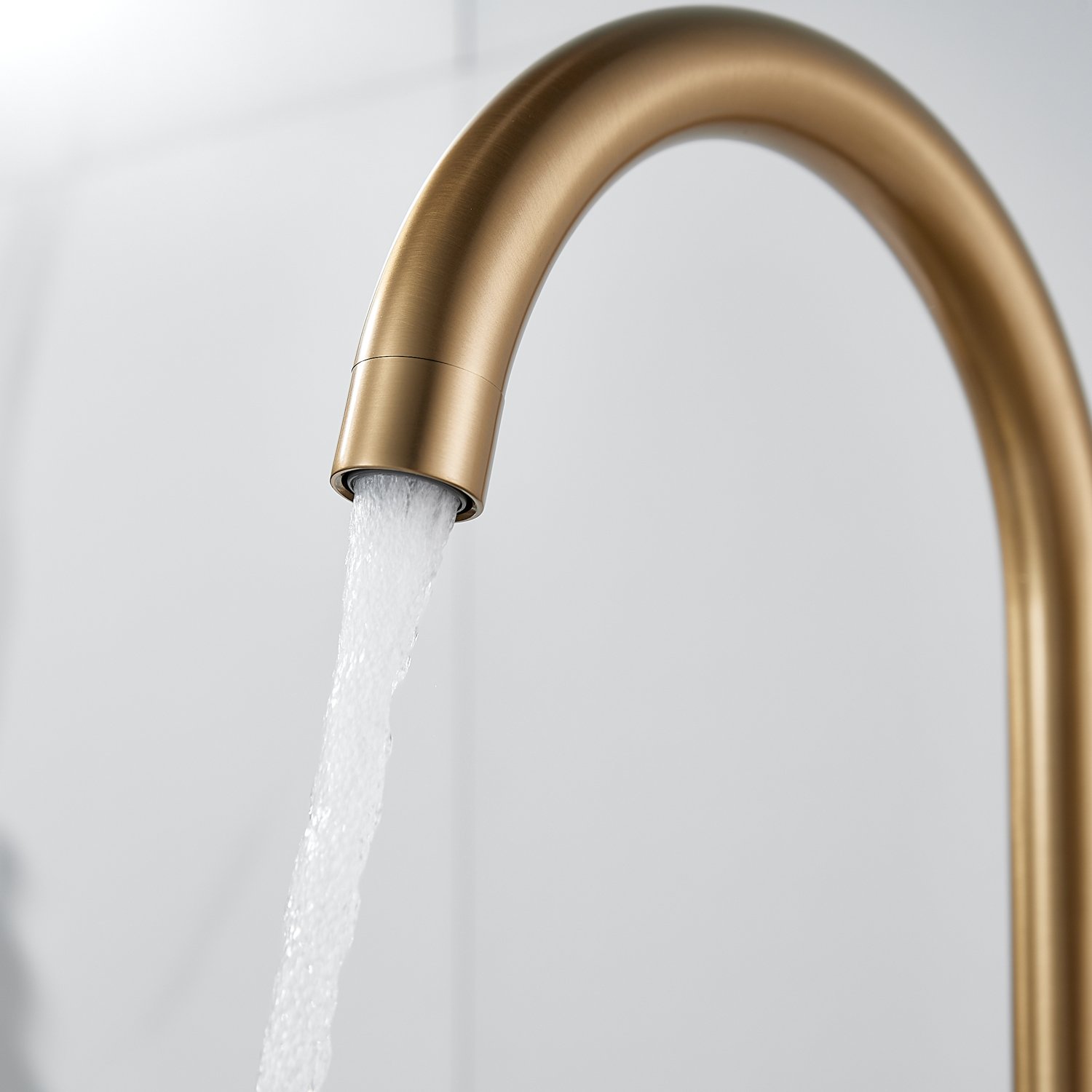 Смеситель для кухни Shevanik S128G - идеальное решение для вашей кухни. Благодаря цвету "золотой сатин" и высокому поворотному изливу, он гармонично впишется в любой интерьер.