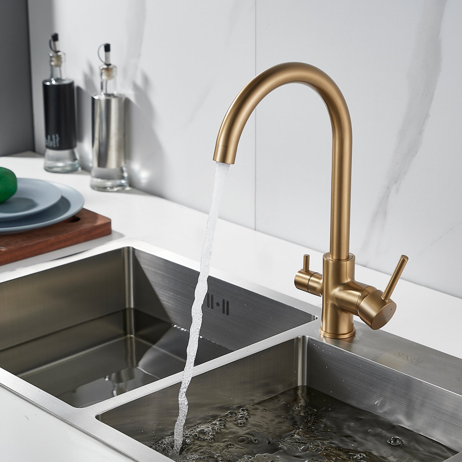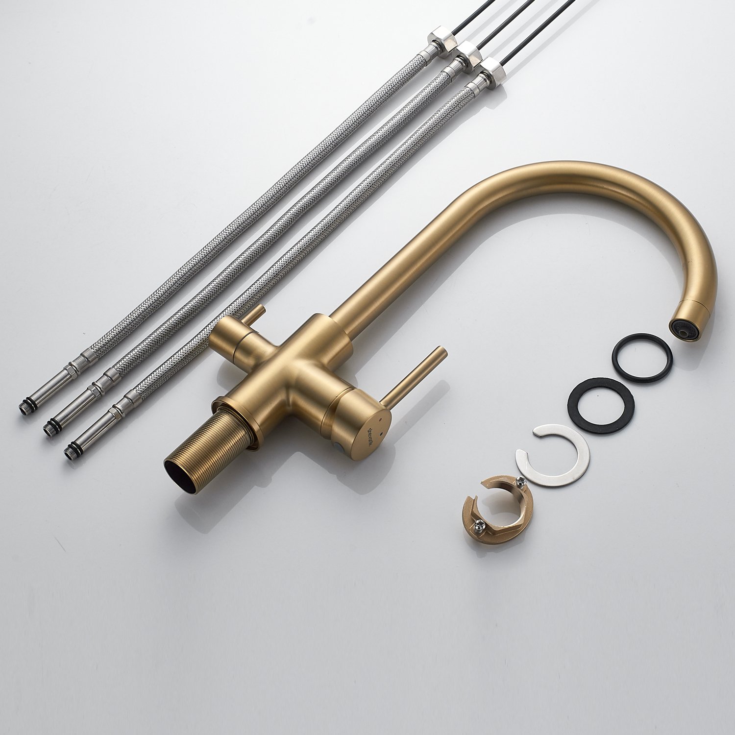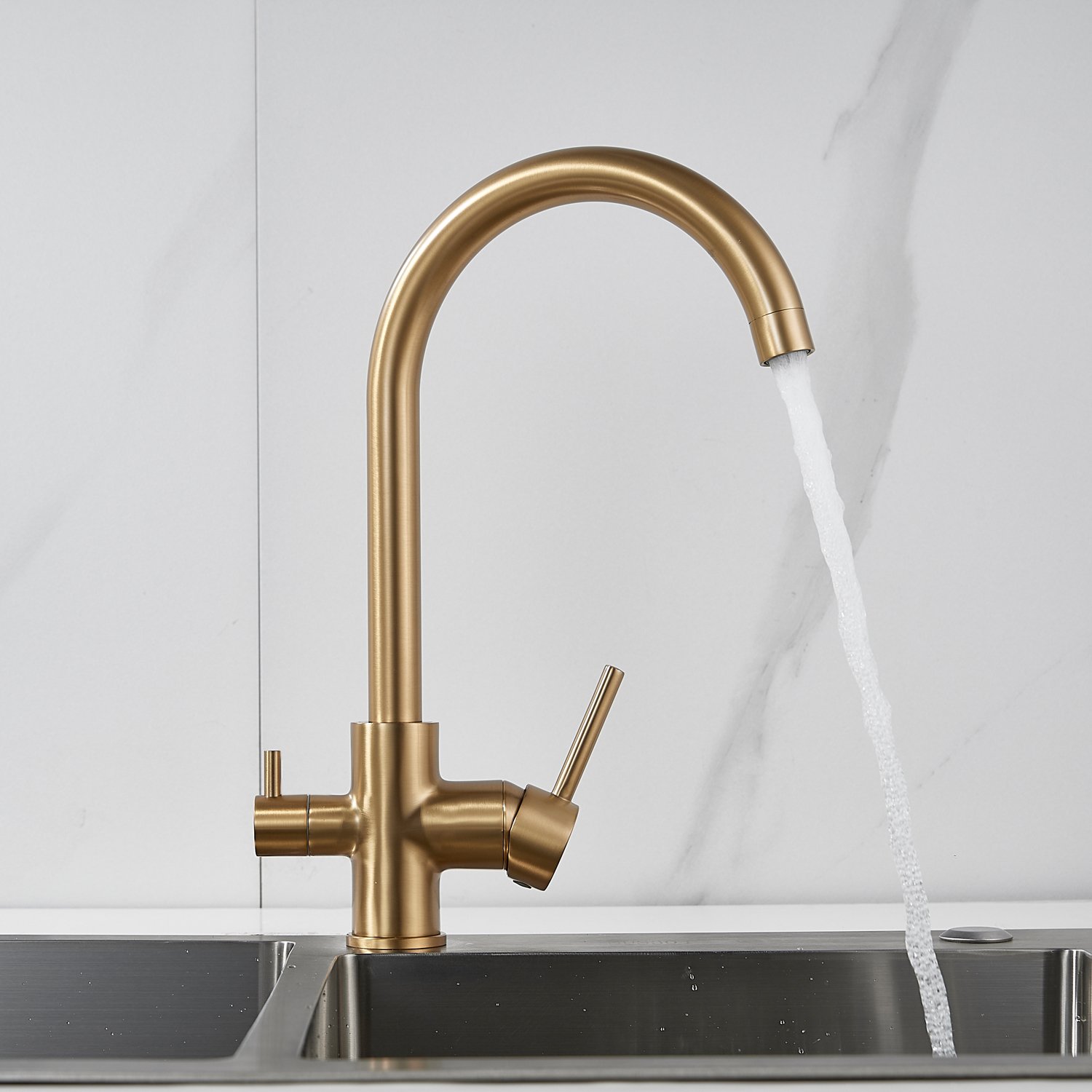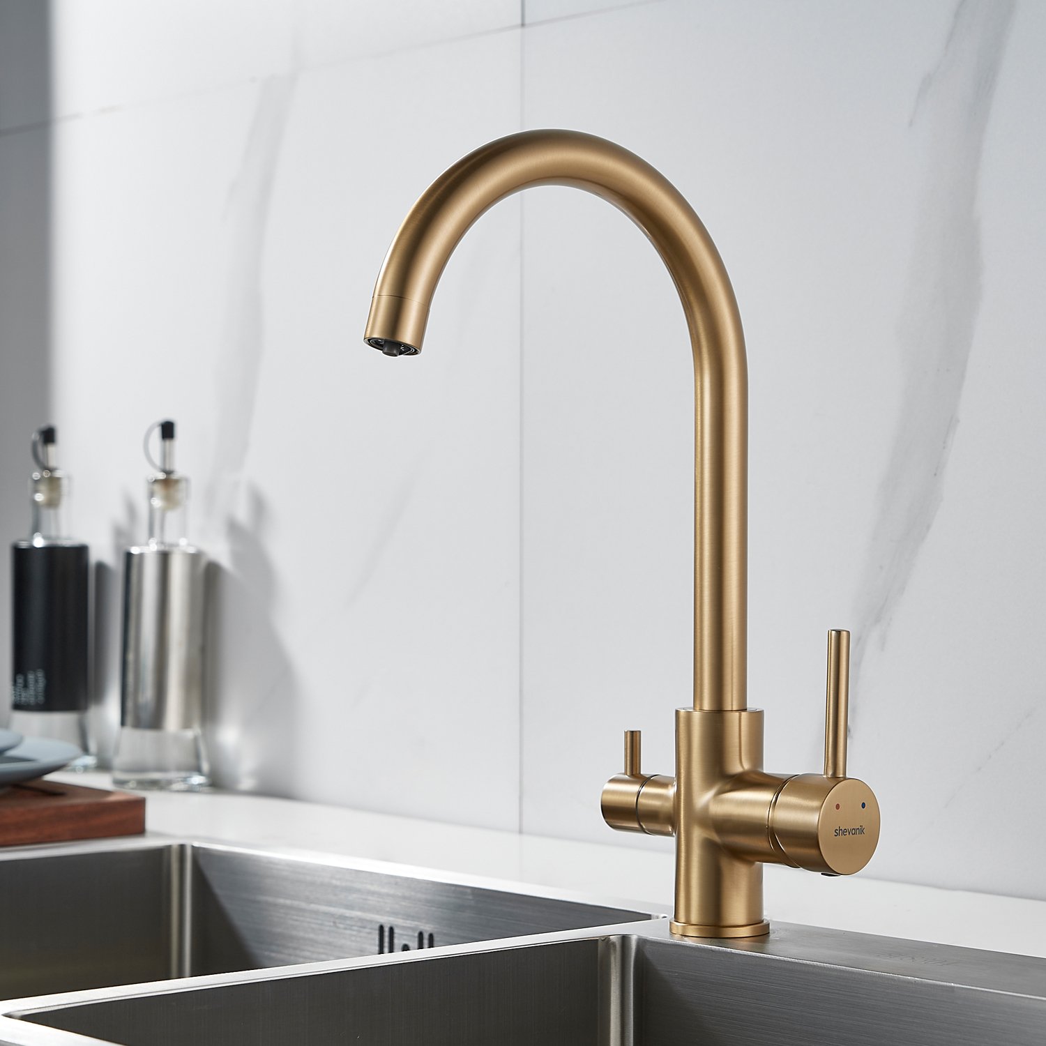 Смеситель для кухни с подключением фильтра Shevanik S128G, золотой сатин
