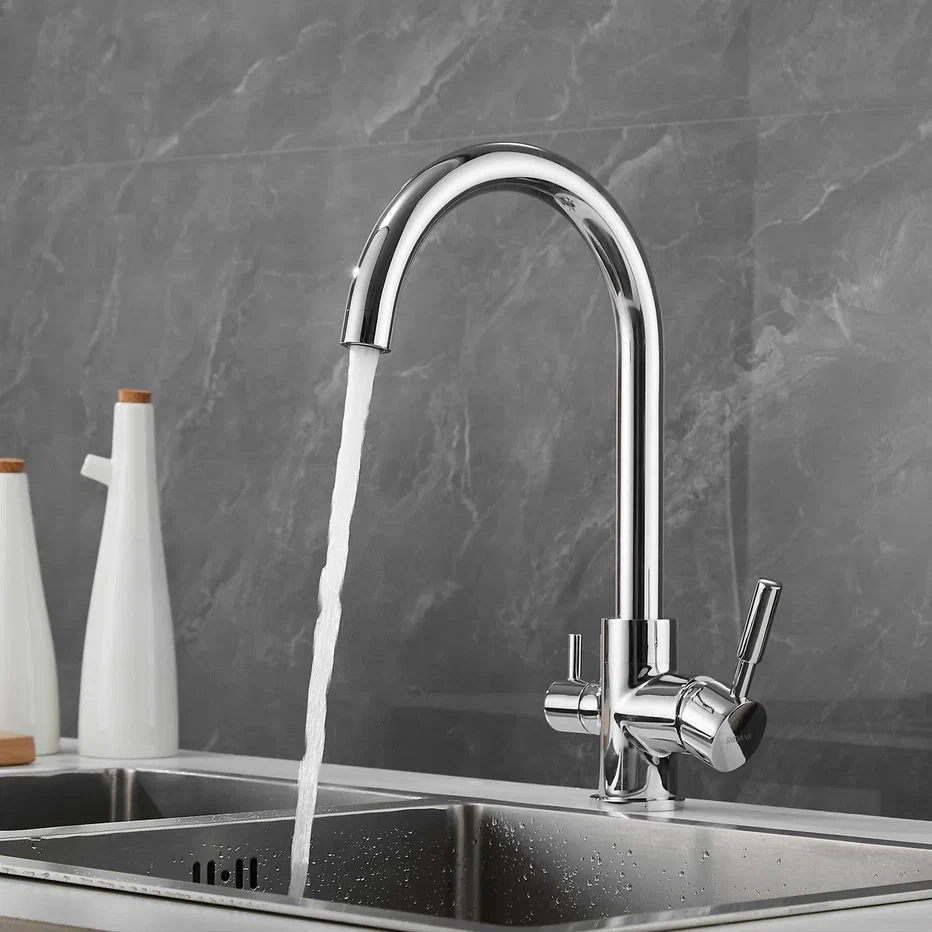 Смеситель для кухни с подключением фильтра Shevanik S168, хром. Управление: рычажное. Вращение излива: да. Выдвижной излив: нет. Гибкий излив: нет. Высота:38,2.
