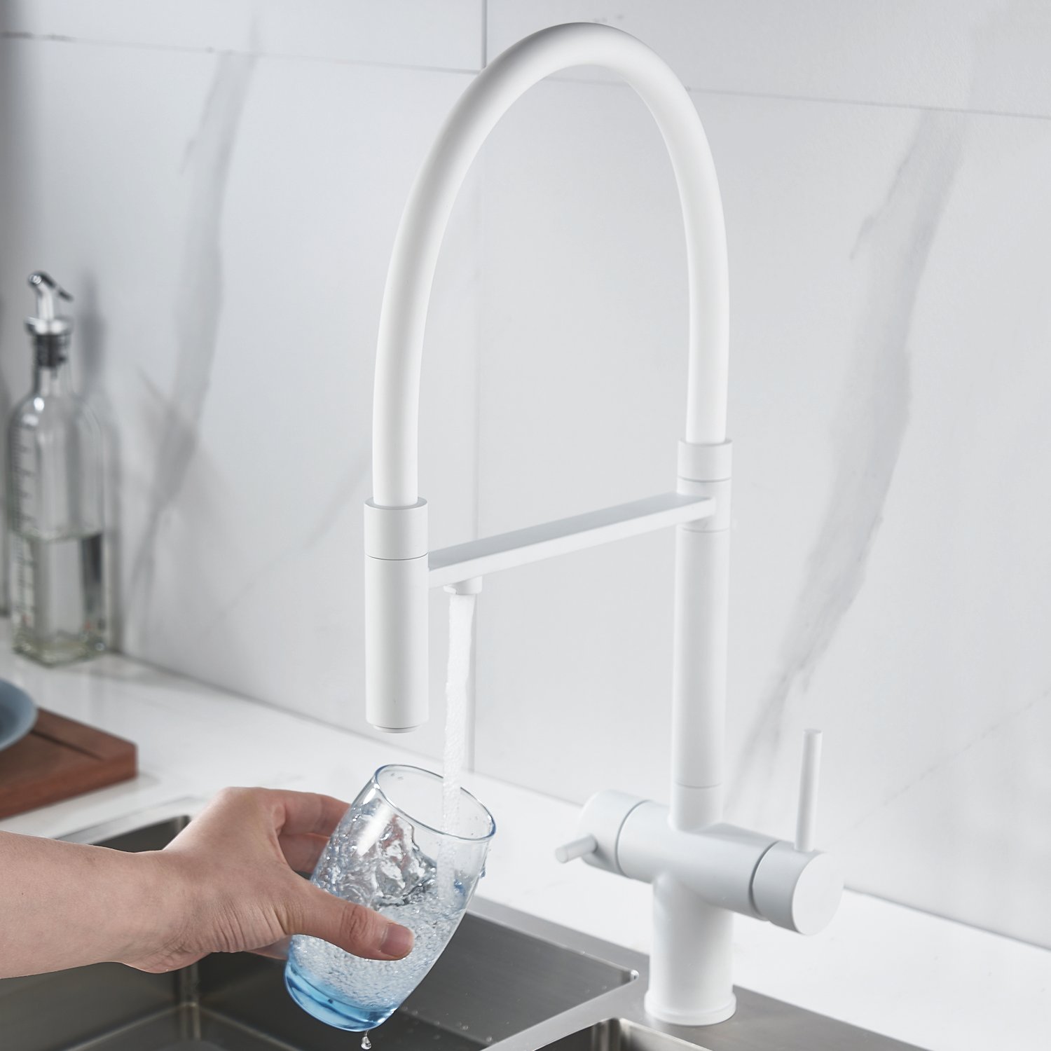 Смеситель для кухни с подключением фильтра Shevanik S178C, белый