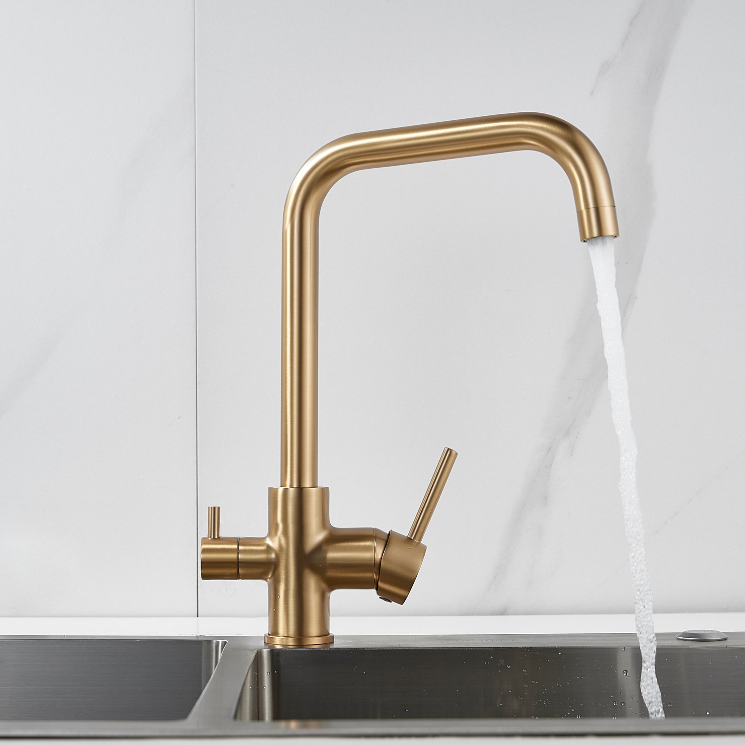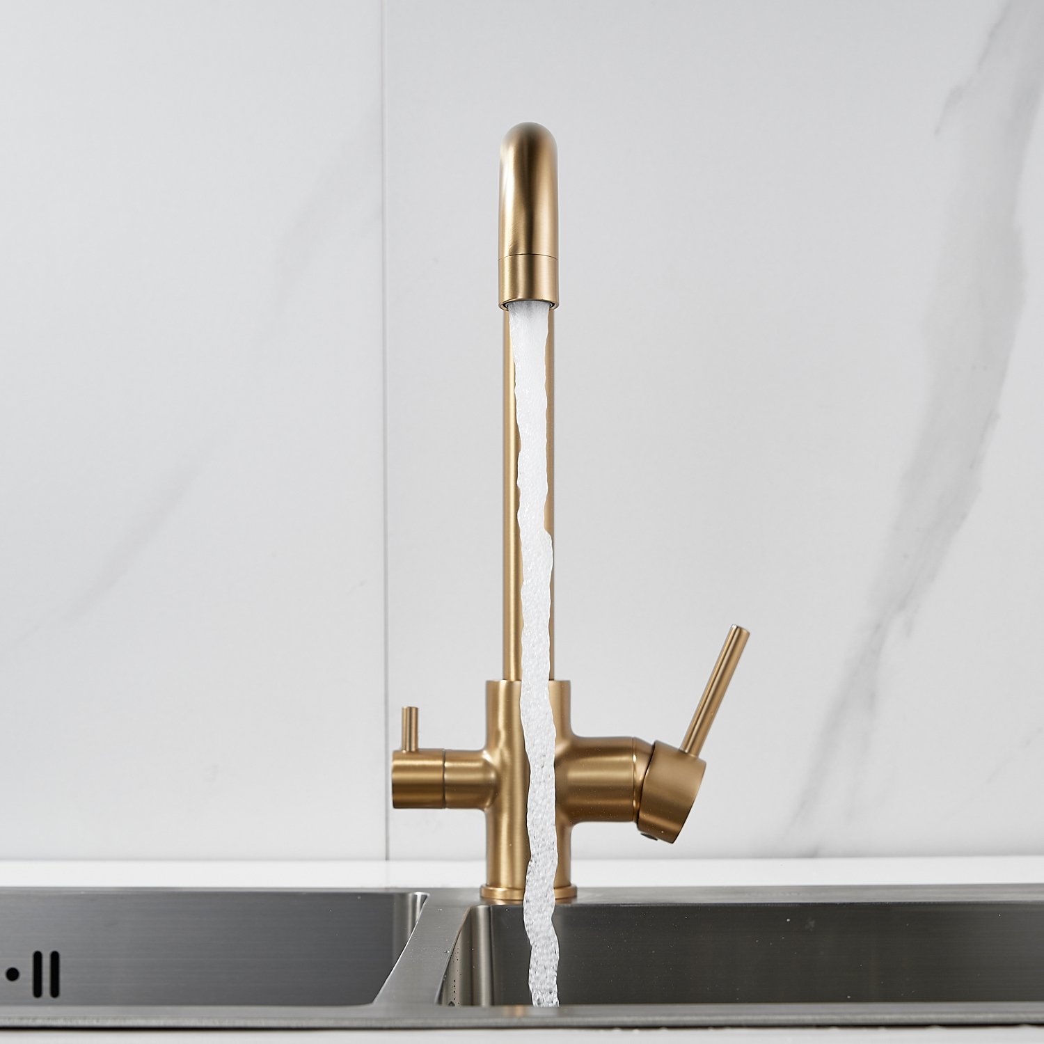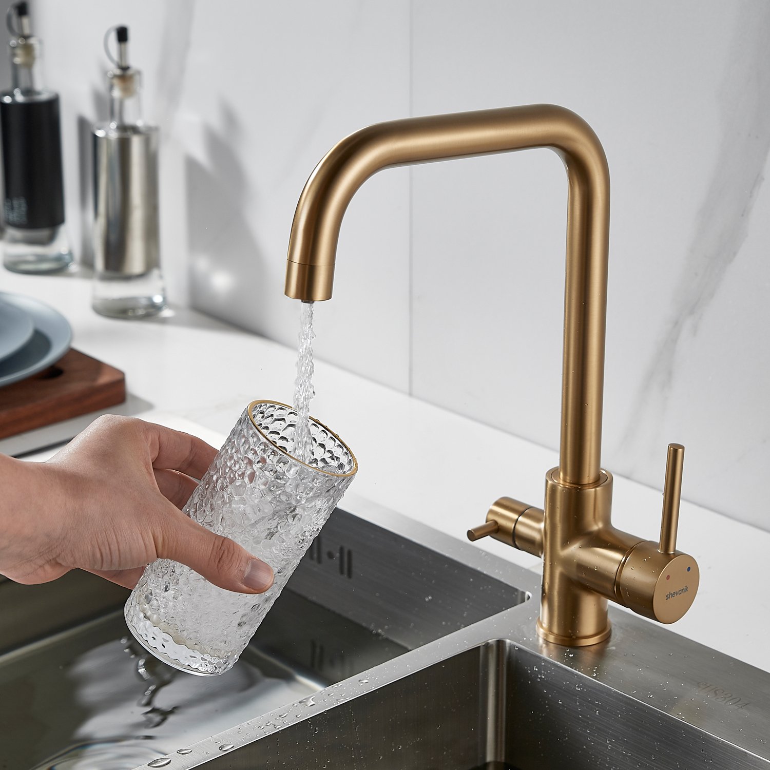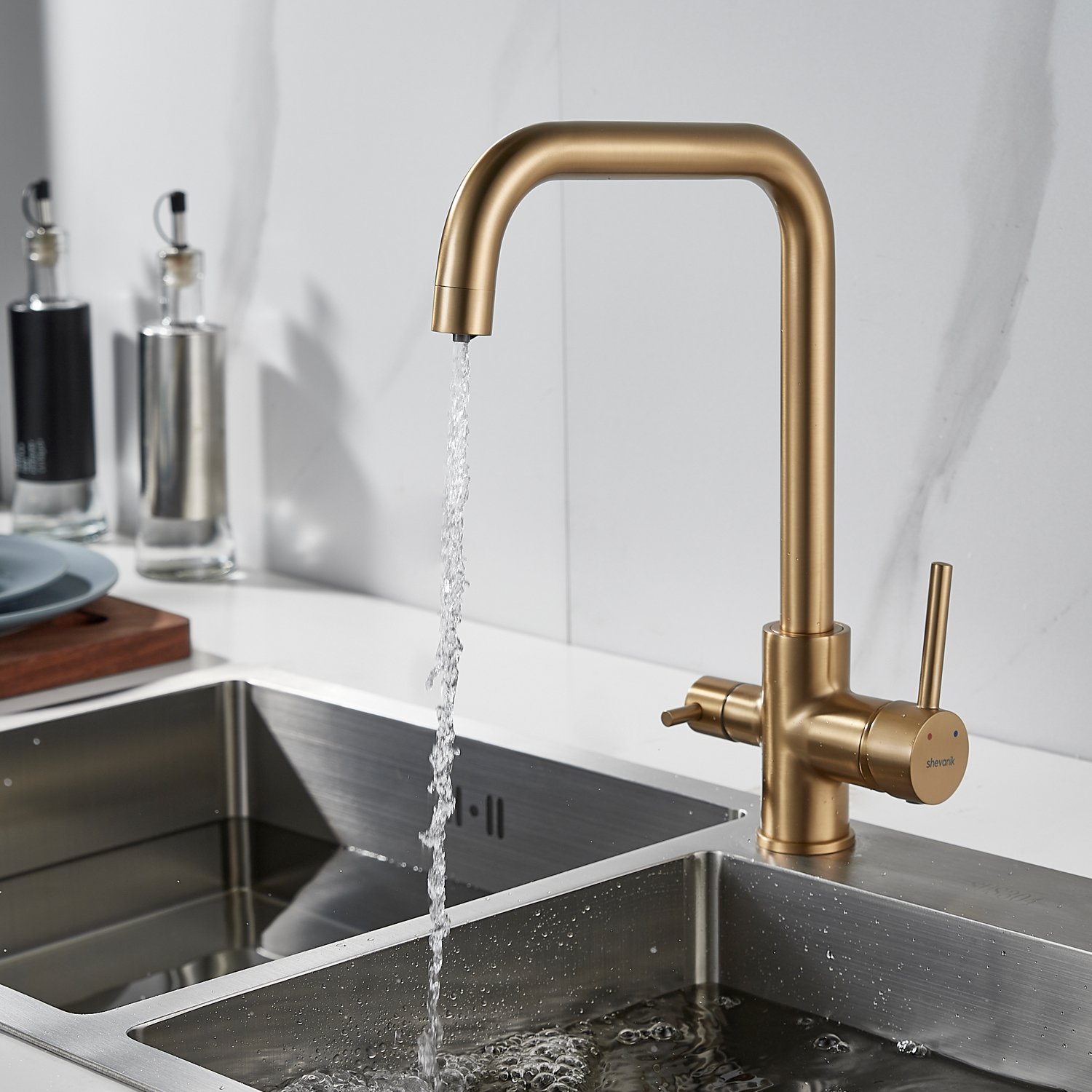 Смеситель для кухни с подключением фильтра Shevanik S228G, золотой сатин