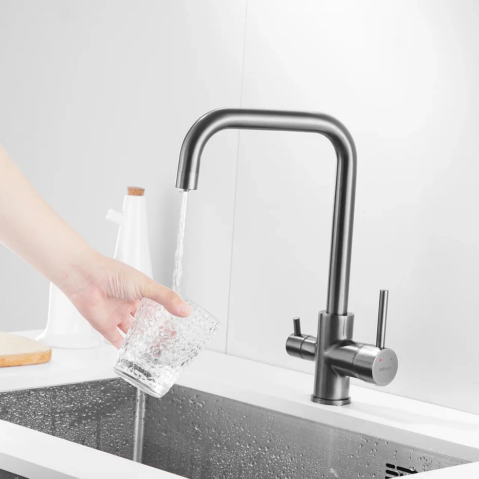 Смеситель для кухни с подключением фильтра Shevanik S228T, оружейная сталь