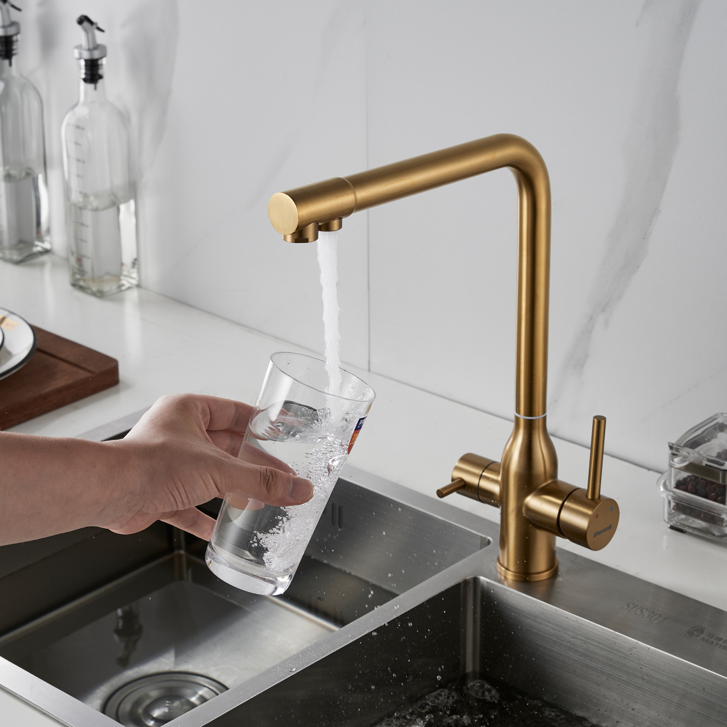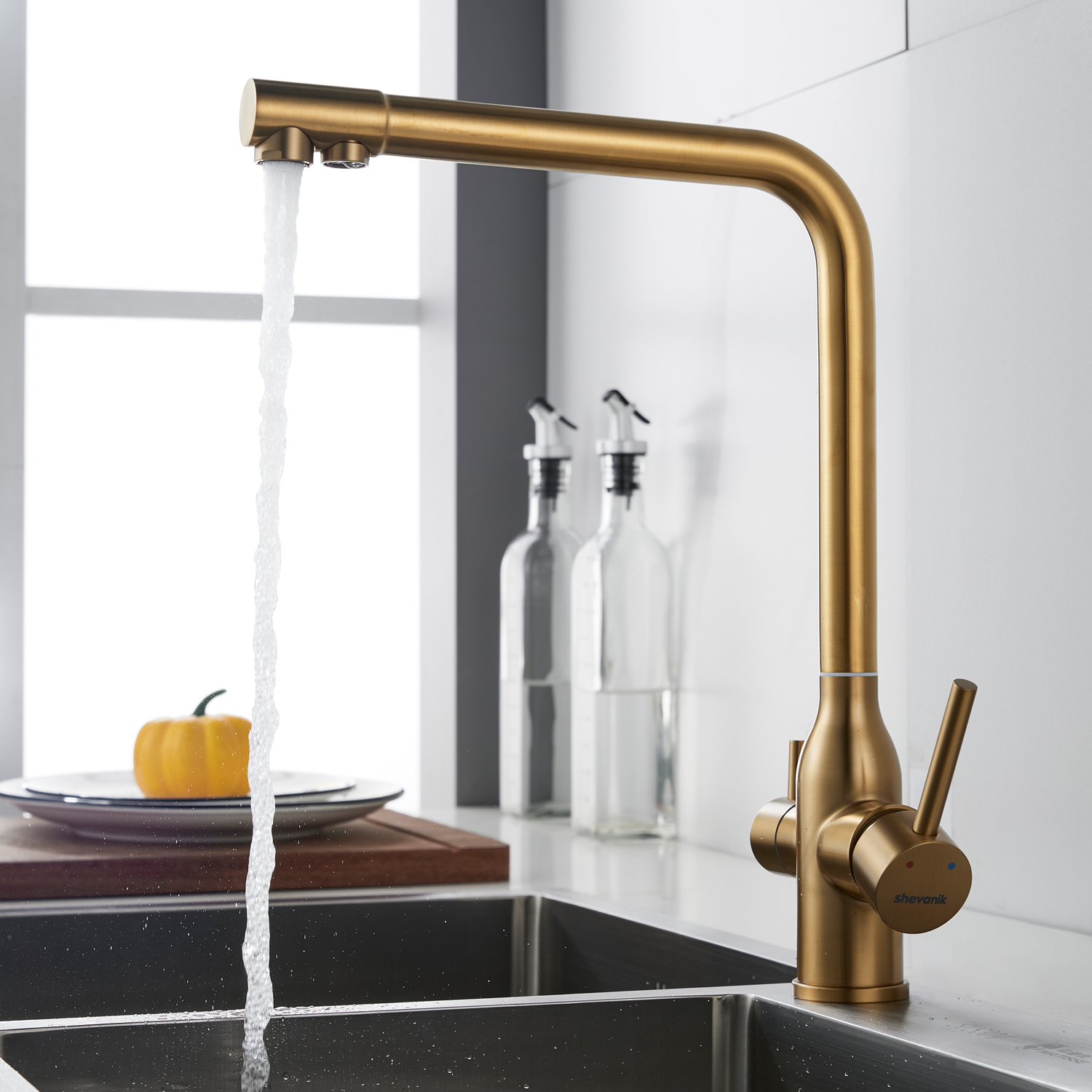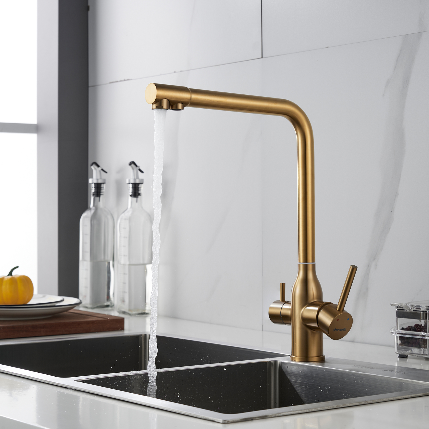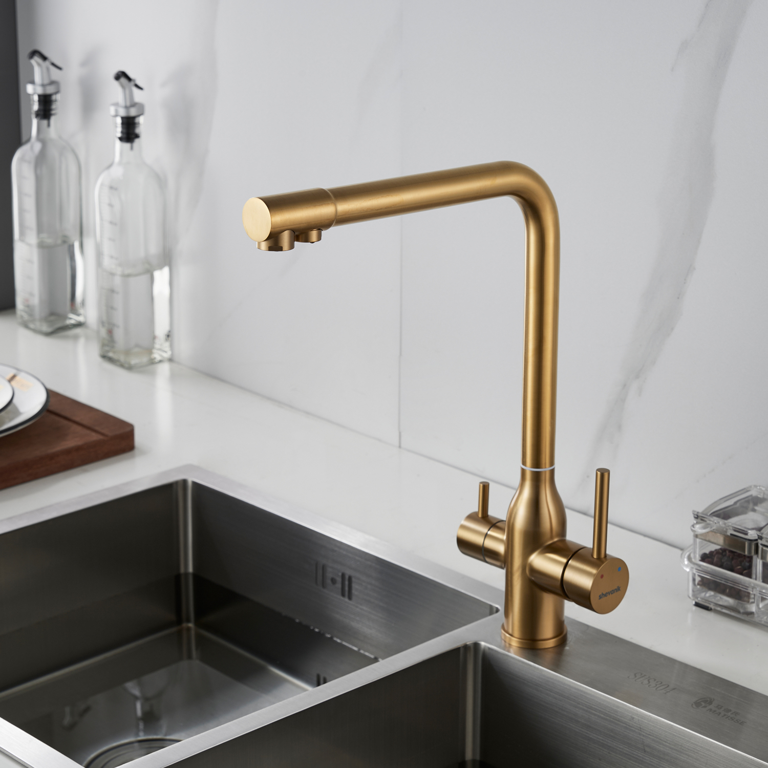 Смеситель для кухни с подключением фильтра Shevanik S248G, золотой сатин