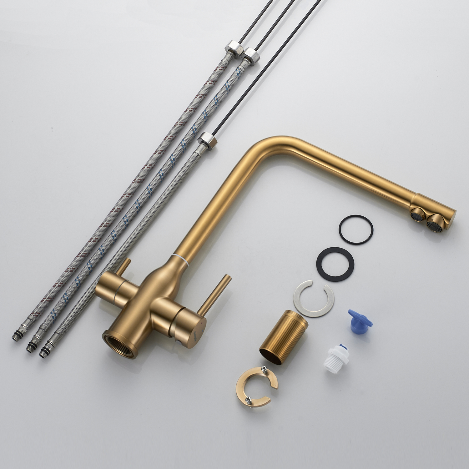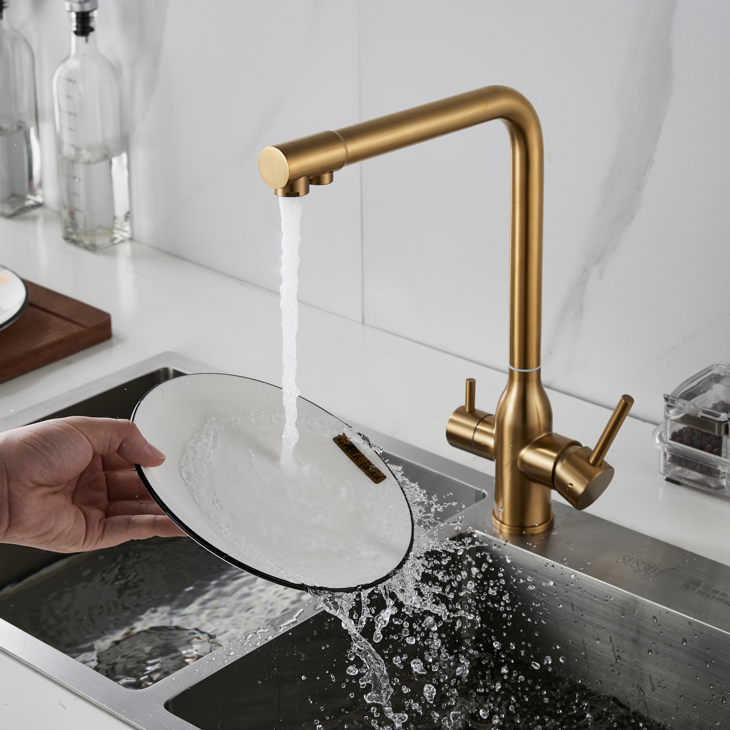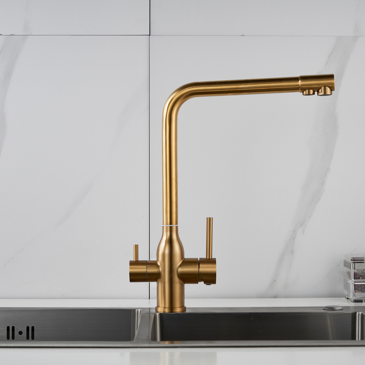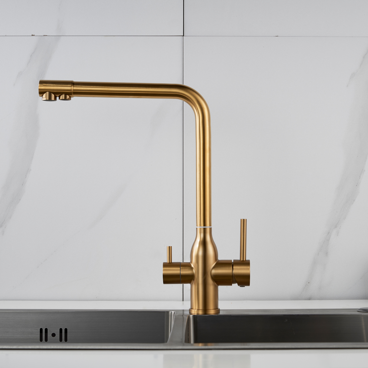 Смеситель для кухни с подключением фильтра Shevanik S248G, золотой сатин