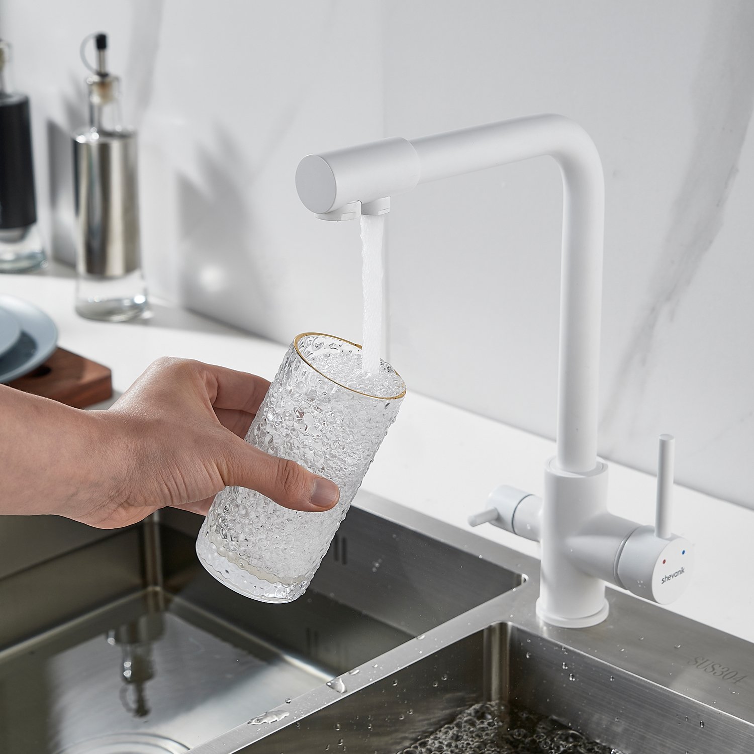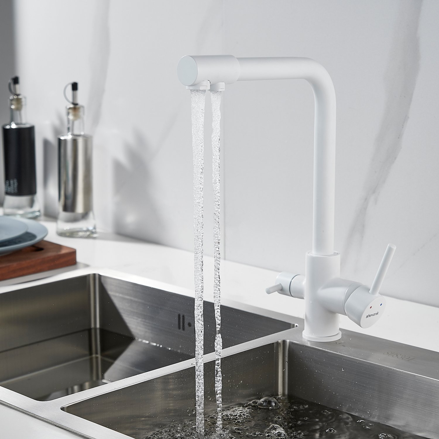 Смеситель для кухни с подключением фильтра Shevanik S328C, белый