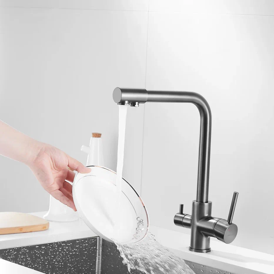 Смеситель для кухни с подключением фильтра Shevanik S328T, оружейная сталь