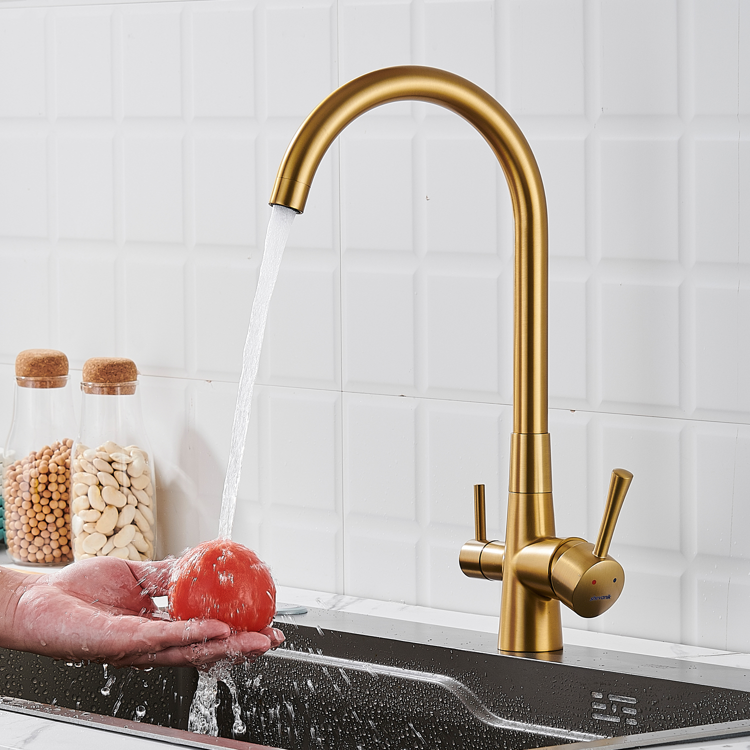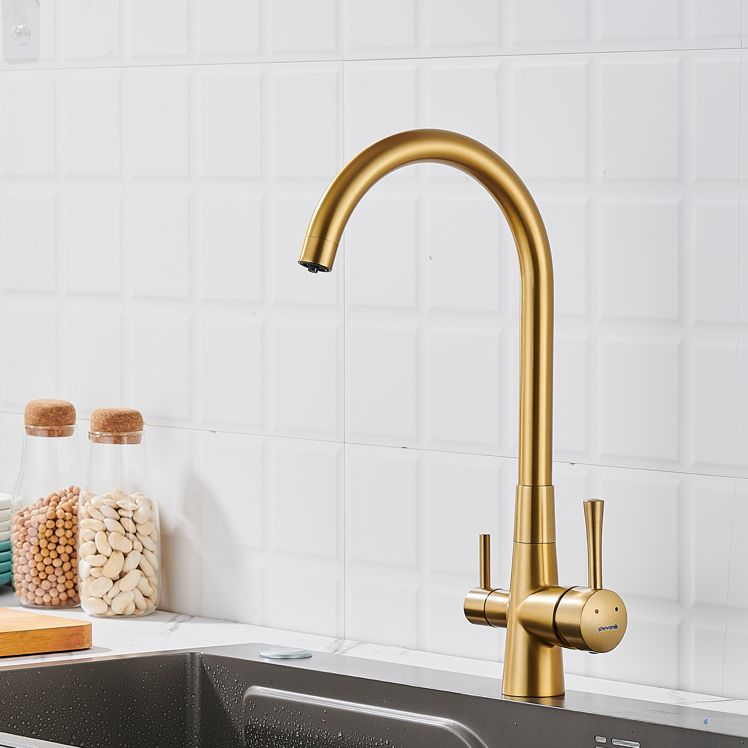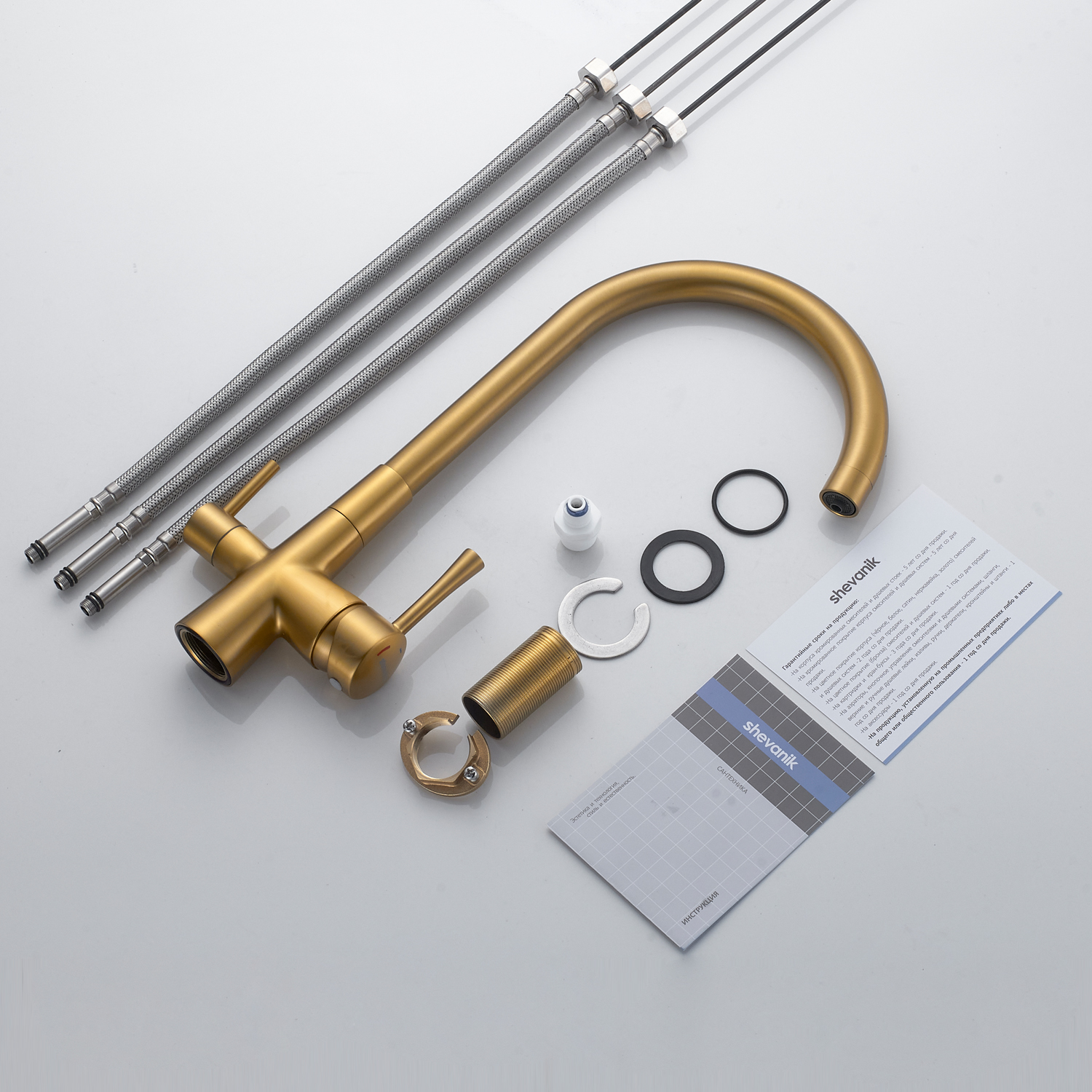 Смеситель для кухни с подключением фильтра Shevanik S428G, золотой сатин