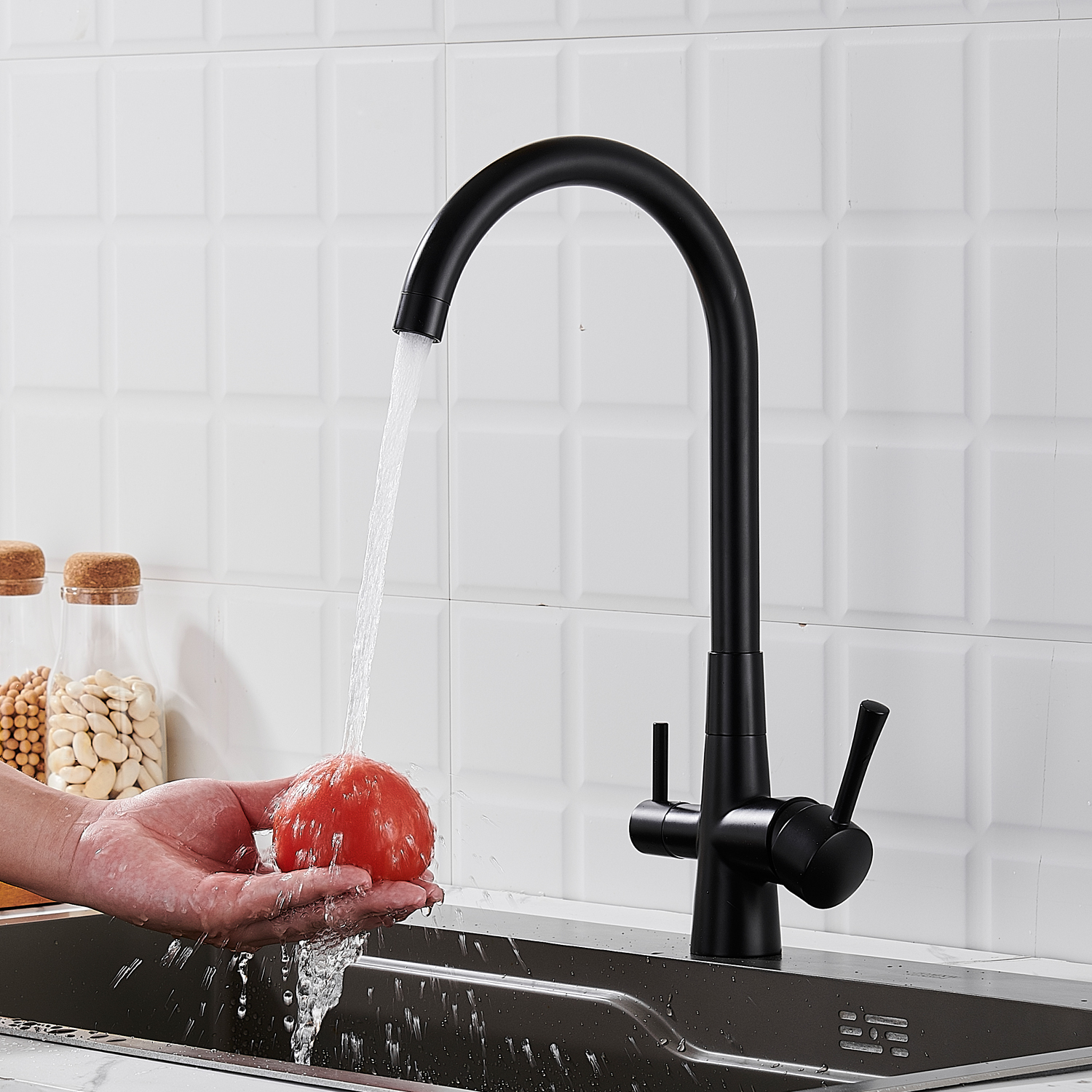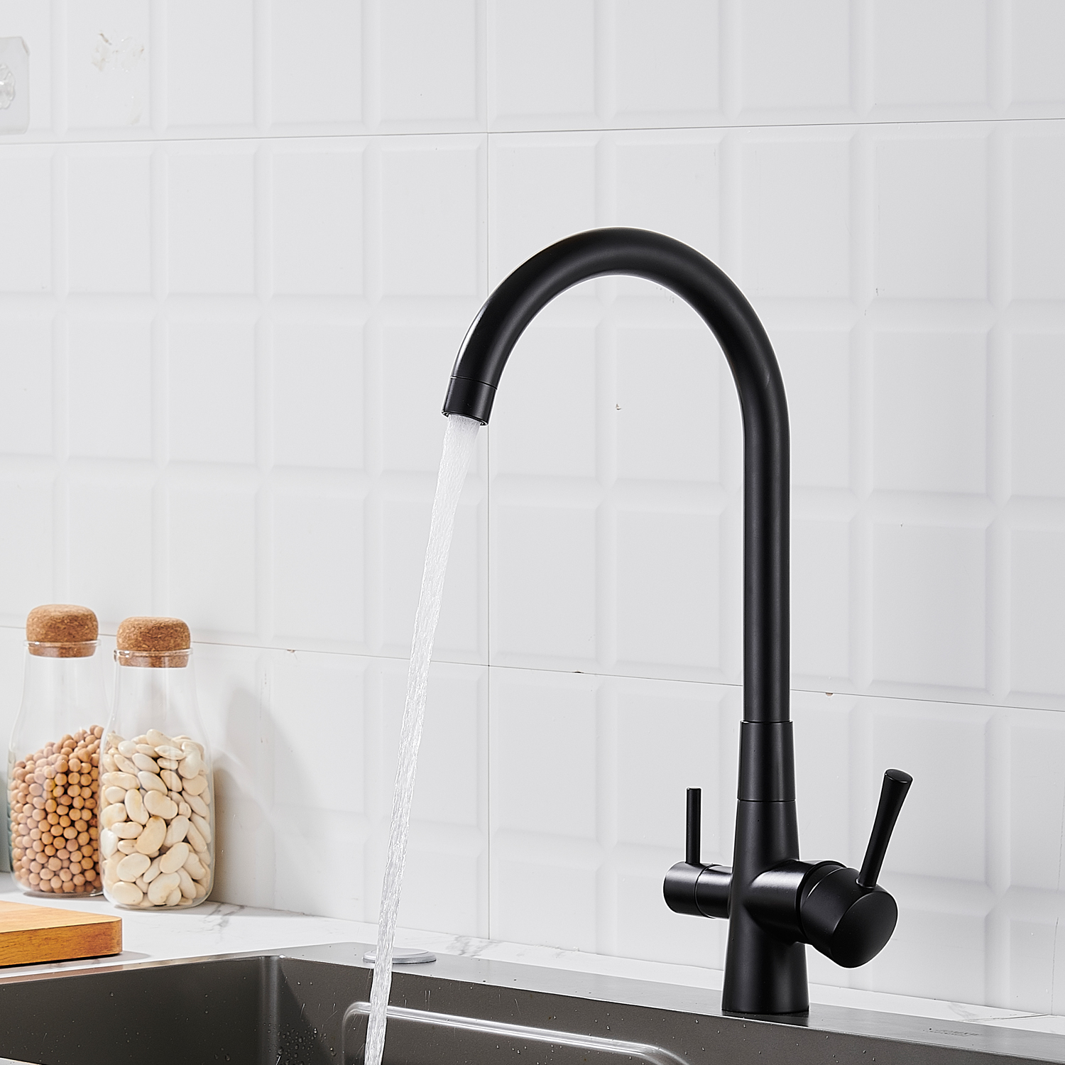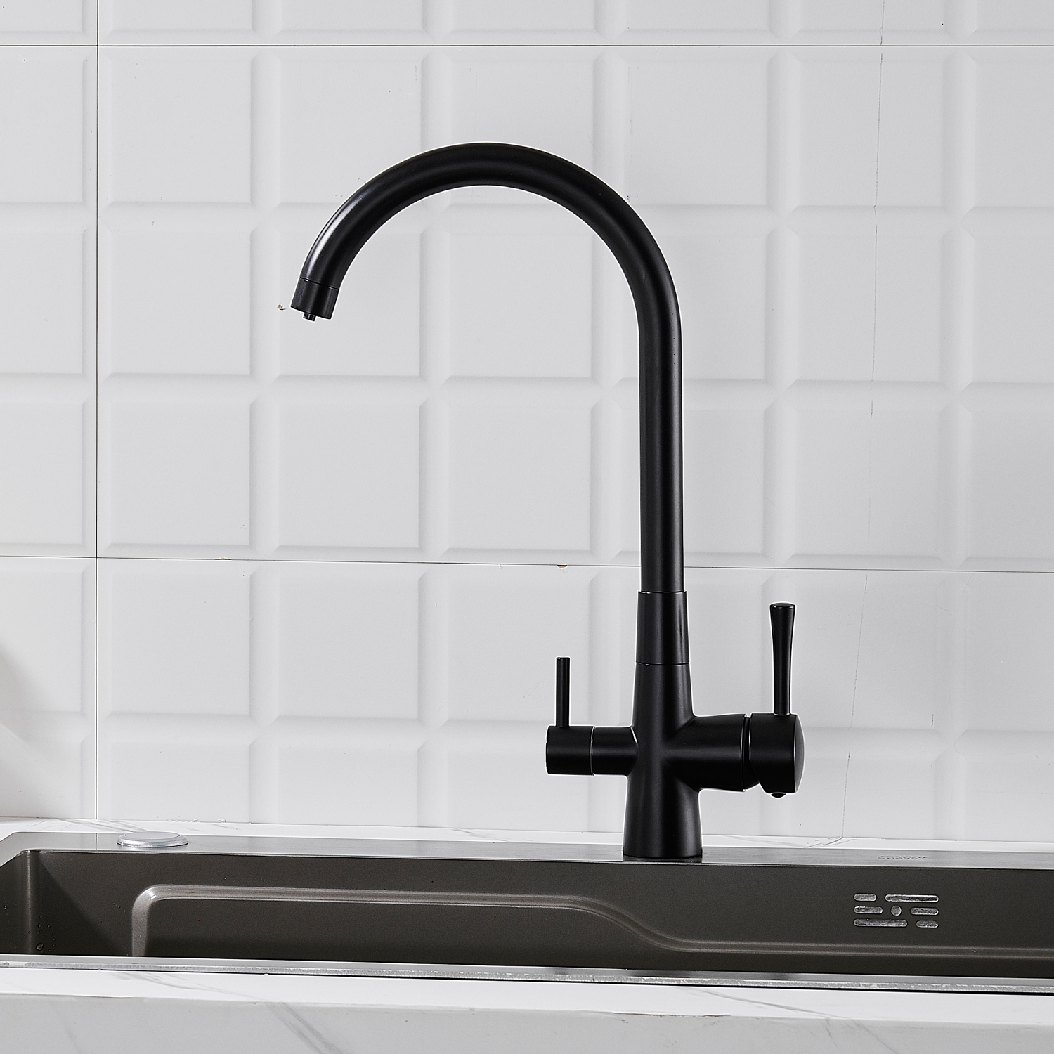 Смеситель для кухни с подключением фильтра Shevanik S428H, черный