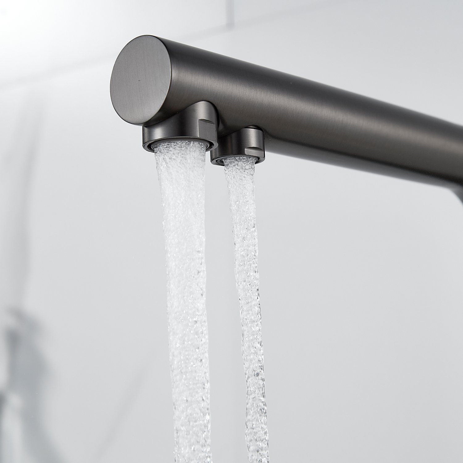 Смеситель для кухни Shevanik S468T - идеальный выбор для вашей кухни, выполненный в цвете оружейной стали, он придаст особый шарм интерьеру. Высокий поворотный излив обеспечивает комфортное использование, а канал для питьевой воды делает смеситель удобным для фильтрации воды. Изготовлен из прочной и долговечной латуни, смеситель гарантирует долгий срок службы. Специальное немаркое покрытие упрощает уход, а 5-летняя гарантия подтверждает качество продукта