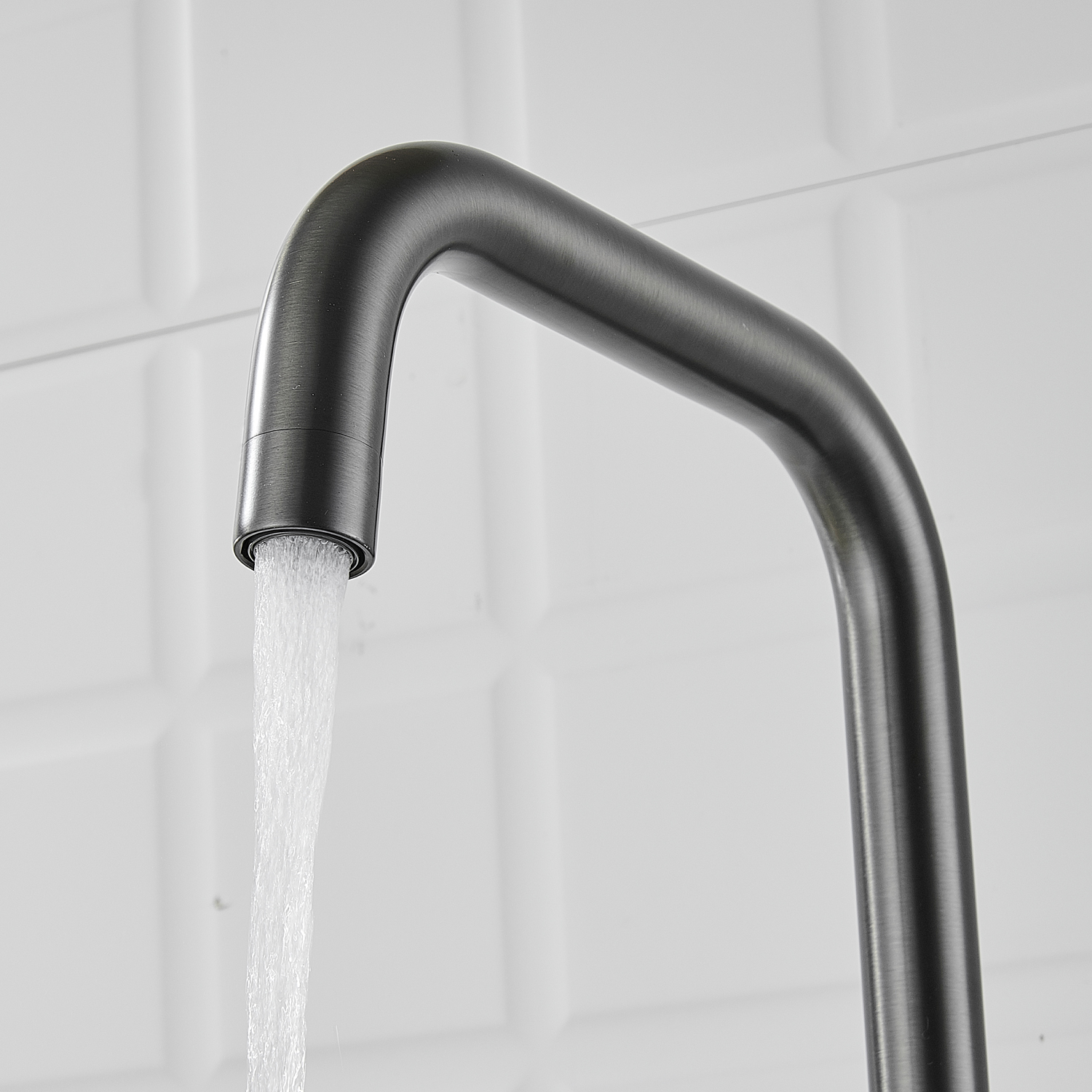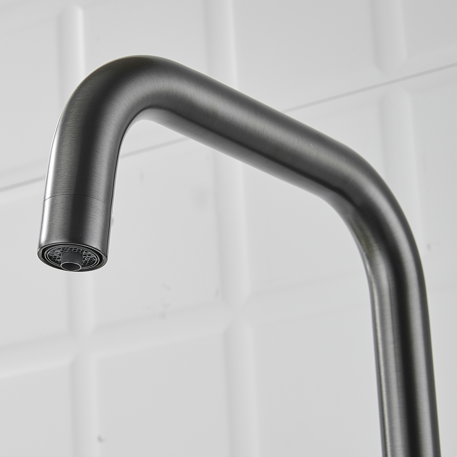 Высокий поворотный излив с аэратором не только стильно выглядит, но и практичен в использовании. Дополнительный канал для подачи питьевой воды делает этот смеситель универсальным решением для вашей кухни. Монтаж к столешнице или мойке осуществляется легко и быстро с помощью гайки, а в комплекте уже идет гибкая подводка длиной 50 см с стандартом подключения 1/2".